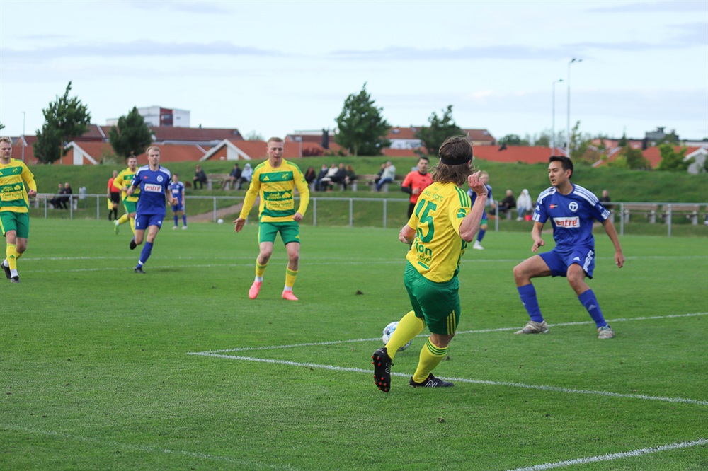 Men kvitteringen skulle inte vänta på sig när vi själva kladdar omkring med bollen i eget straffområdet 2 minuter senare, som friställde en blåklädd med helt öppet mål. Funkar det inte i Allsvenskan, funkar det inte i Division 5. Ett väldigt onödigt baklängesmål, men vi hoppar på hästen och 10 minuter efter 1-0 tar Linus Olsson sikte och vispar till bollen 25-30 meter ut till ett nytt ledningsmål. Ett riktigt fint fotbollsmål helt enkelt.