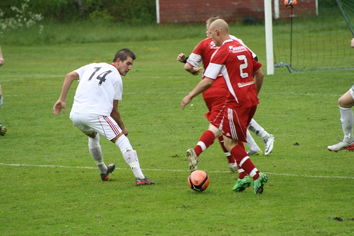 ViktorTillberg i kamp med Gusumspelare på Dalängen... Foto:Jonny Lang