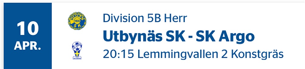 Imorgon är det dags för den andra omgången av årets 5B för SK Argo. Det är bortamatch igen och för motståndet står Utbynäs SK. Matchen startar 20.15 på Lemmingvallens konstgräs.