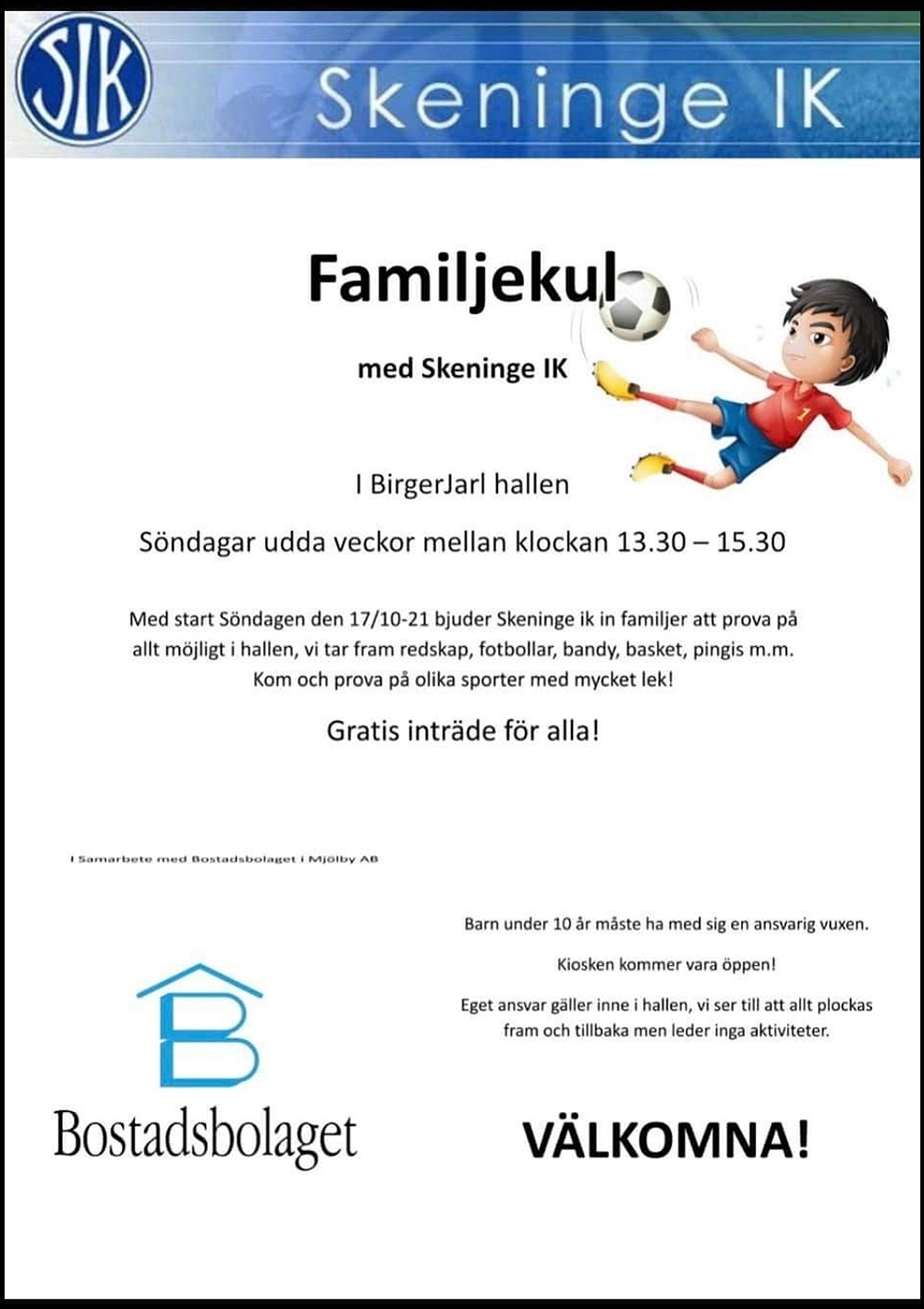 Idag kör vi familjekul igen. Vi har även med oss Skänninge Lions som bjuder på varmkorv och festis!