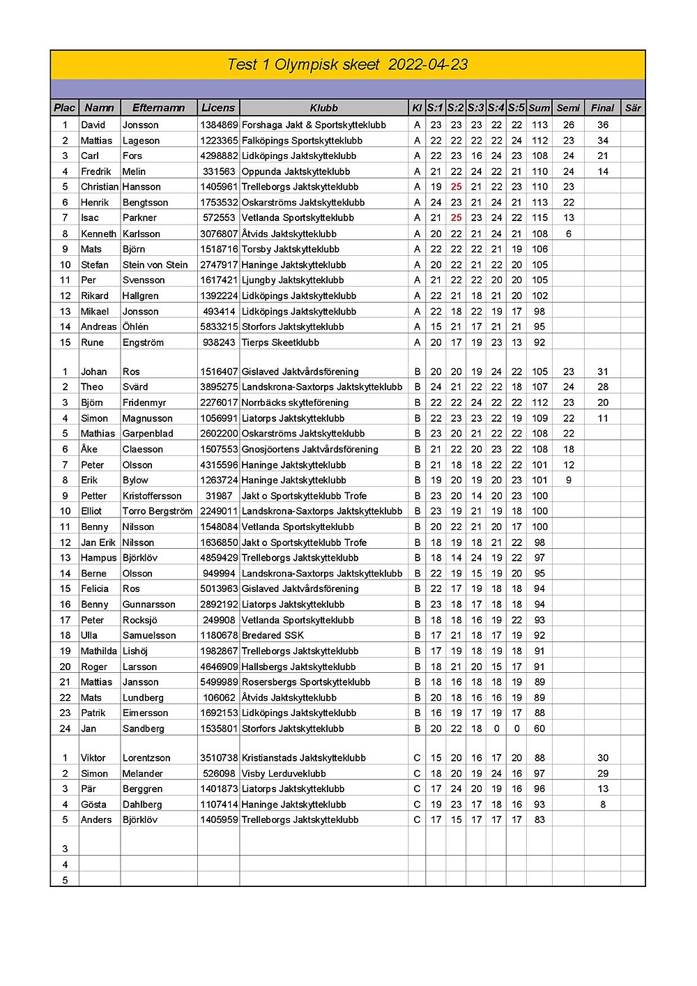 Under helgen 23-24/4 genomfördes det första av 3st landslagstest i Olympisk Skeet vid våra fina banor på Lövsjötorp. Tävlingen avgjordes under dessa dagar i fint men blåsigt väder. 44st deltagare fanns på plats och kämpade för placeringarna.