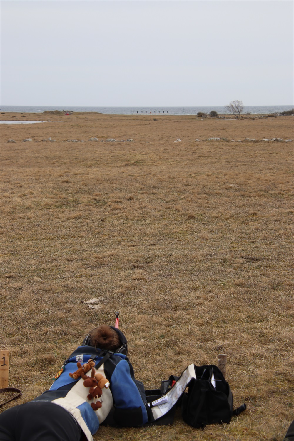 Öland kallas för ”Solen och vindarnas ö” och vi fick i varje fall en rejäl dos av ett utav dessa element. Nämligen vinden. Solen sken med sin frånvaro. Emilia gick ut kl 10 på lördagen. Det blåste rejält redan från början. Vi mätte vinden till 2-10 m/s innan hon gick ut. Alla mål var pappfigurer med havet som bakgrund – alltså ingen vit pappbakgrund som hon var van vid. Mellan flera av målen fick vi gå så totalt blev det 4 km promenad vilket var skönt för vinden gjorde att vi blev väldigt frusna.