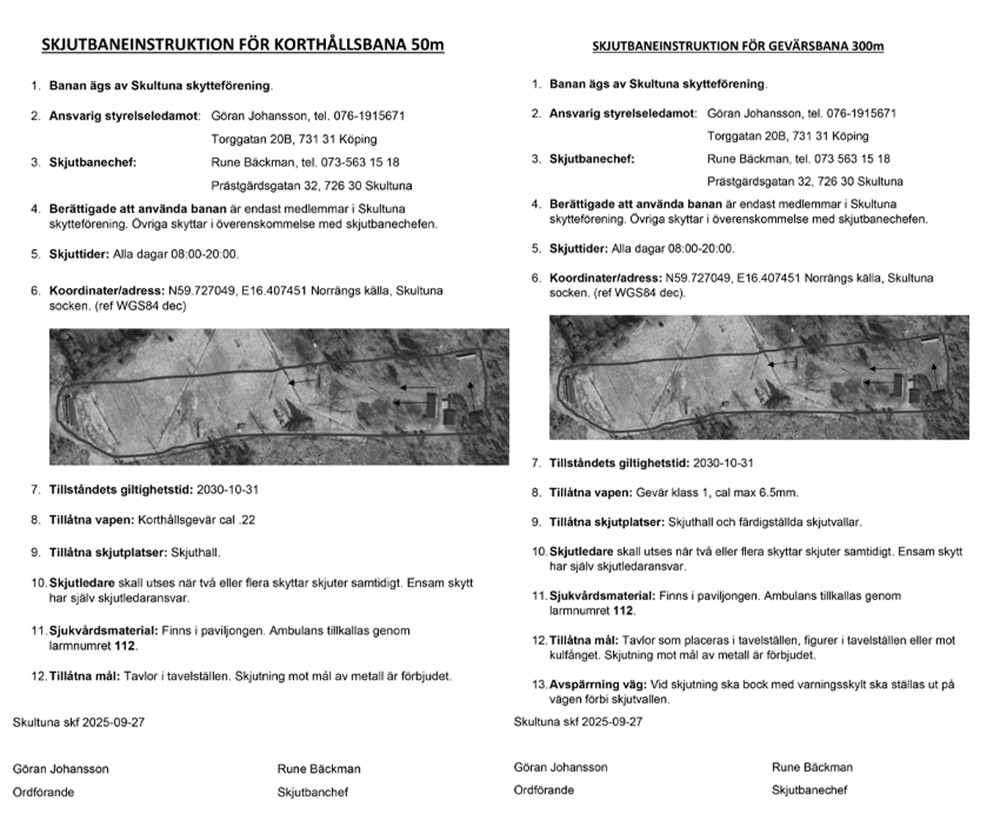 Ordningsregler för Skultuna skjutbana.