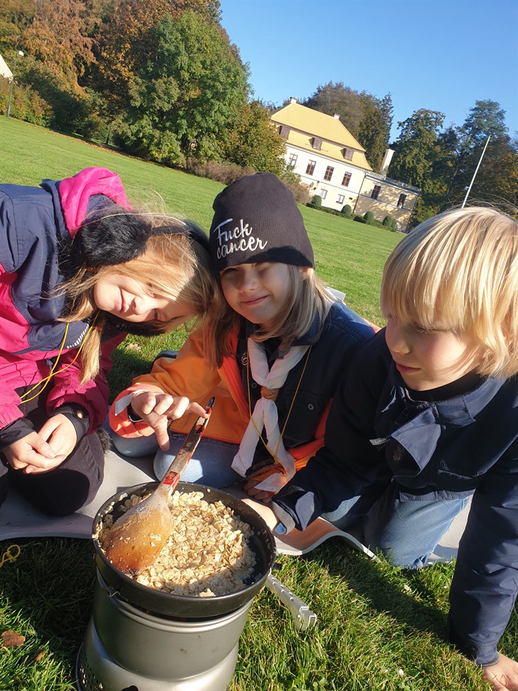 Många glada scouter var på plats. Dagen till ära bjöds det på allt från allemansrätten, till karta och kompass kunskap och de äldsta fick fila på sina hajkbrickor.