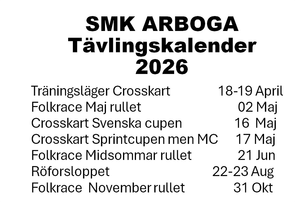 Vi på SMK Arboga vill tacka alla funktionärer som var med och arbetade på tävligen den 1 maj, utan er ingen tävling. Tur med vädret hade vi också. Hoppas vi ses den 23 juni på midsommarrullet. Återigen stort tack till alla som var med och arbetade under tävligen den 1 maj!!