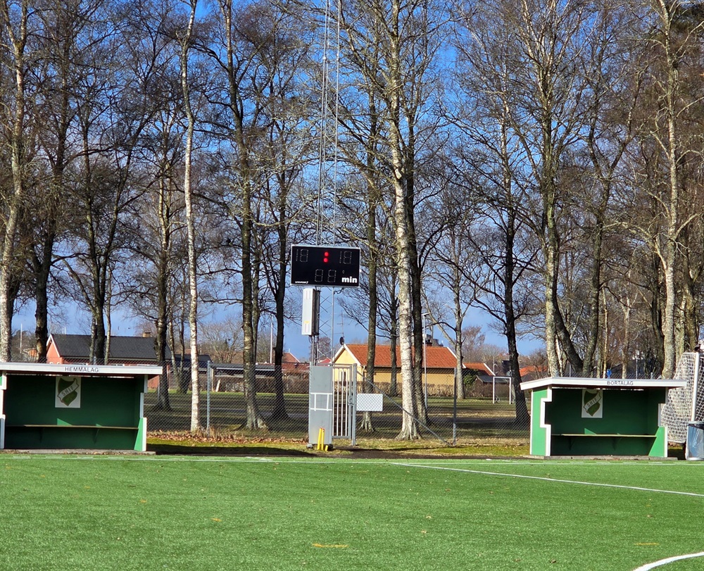Äntligen finns det nu en matchklocka på vår hemmaarena.