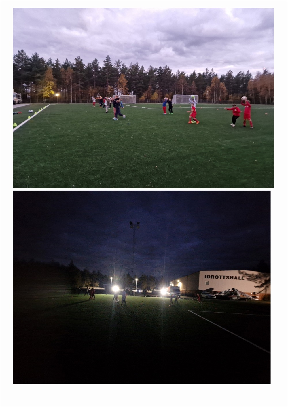 Kommunen har inte hunnit göra klart belysningen. Ställer vi in? Nej vi kör och wow vad barnen körde idag. En annorlunda träning som bjöd på många skratt, hejjarop, armhävningar (för martin och max) och även glass đ