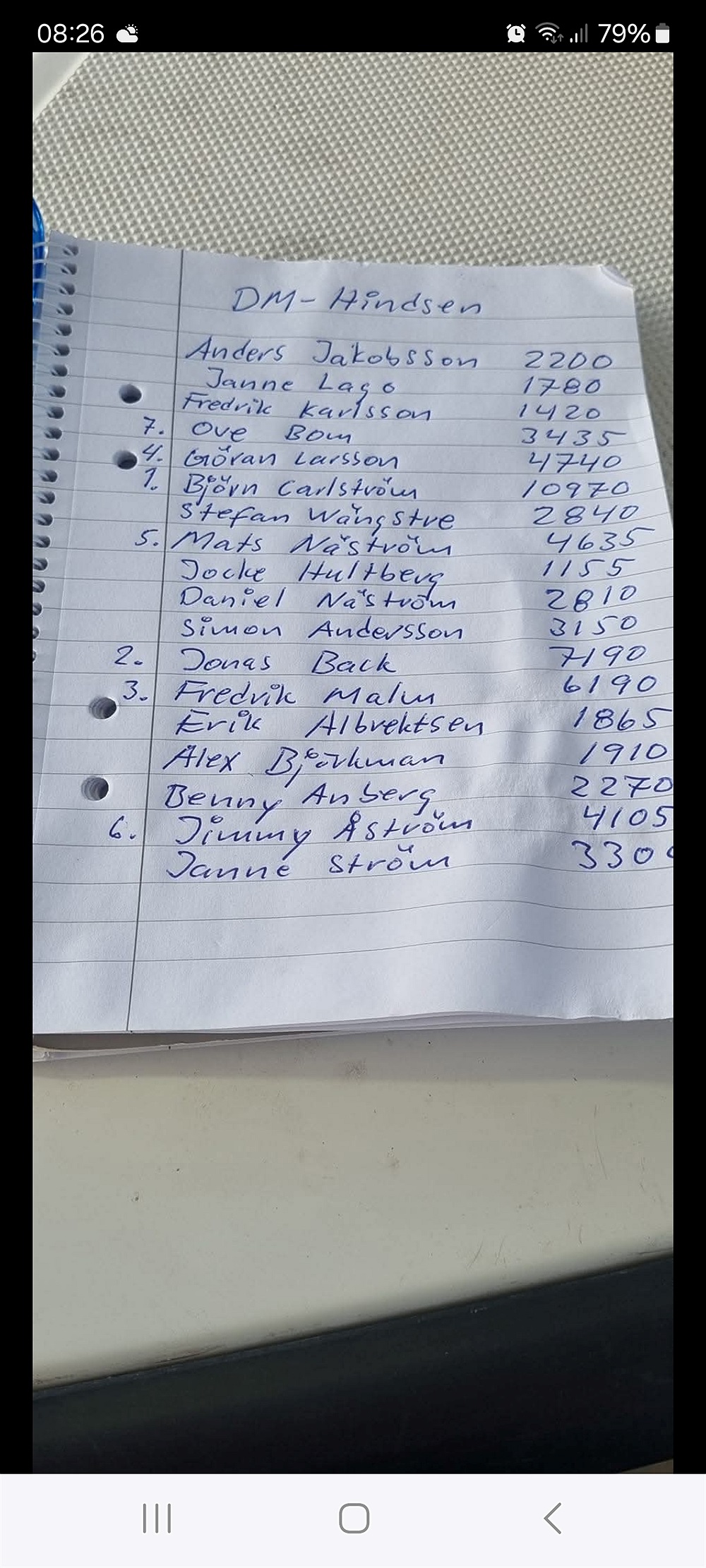 Resultat från Distriktsmästerskap i Båtpimpel i Allgunnen, Rörvik 6/10-24.