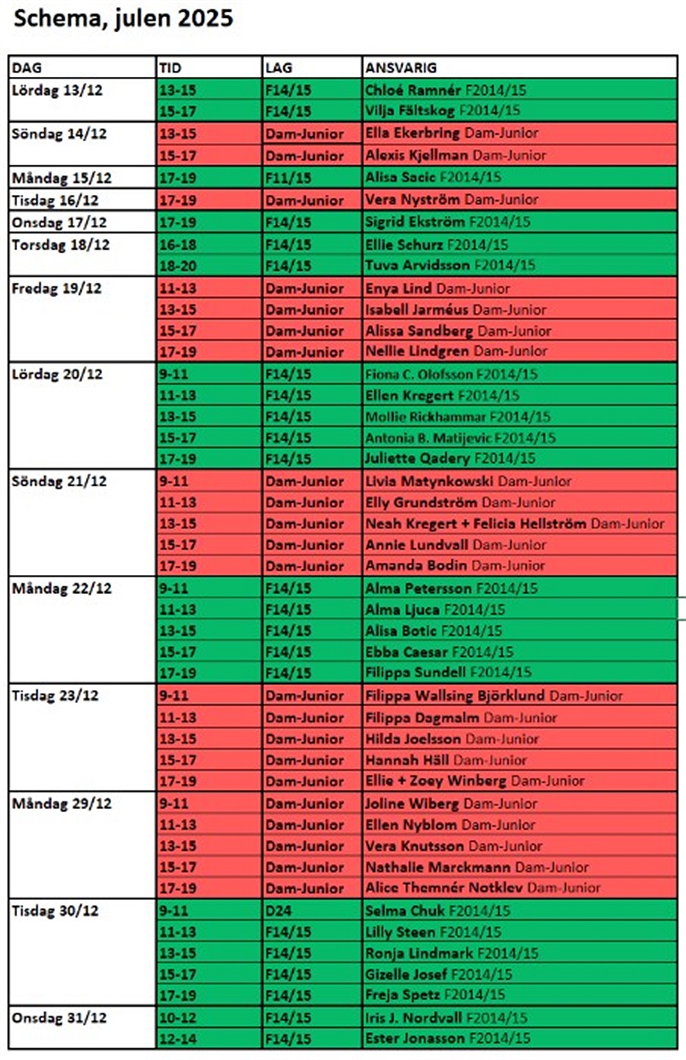 Vänligen meddela detta till Åse Hellström (Dam-Junior) eller Michaela Jonsson Nordvall (F14/15), så att schema kan uppdateras med korrekt ansvariga. Extra viktigt i år, då försäljningen sker gemensamt mellan lagen SSK Dam-Junior och SSK F14/15.