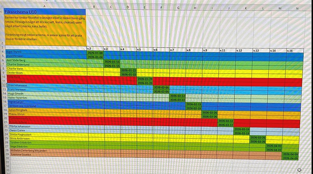 Barnen har önskemål om att vi ska fortsätta med fika efter träningen även i år, vilket vi gör på torsdagar.