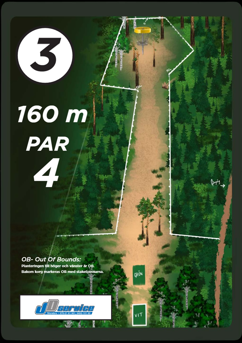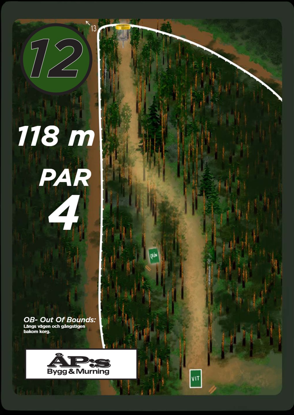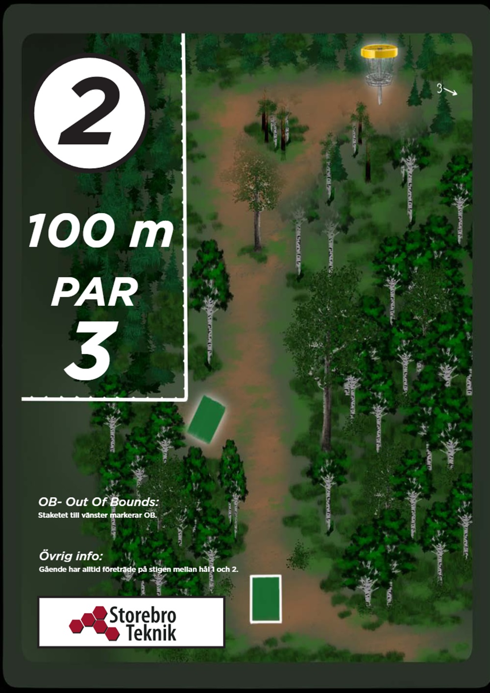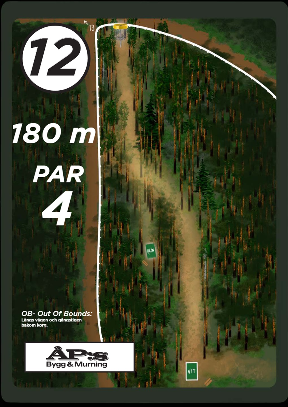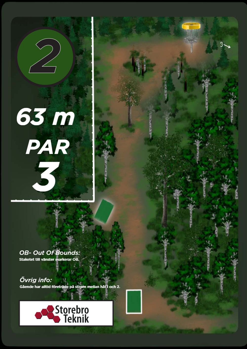 OB markeras på banan med antingen vita OB-pinnar eller staketpinnar (hål 2 och 3).