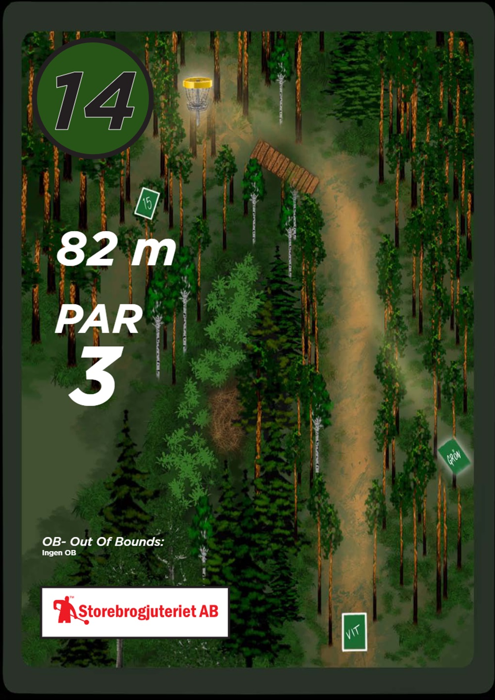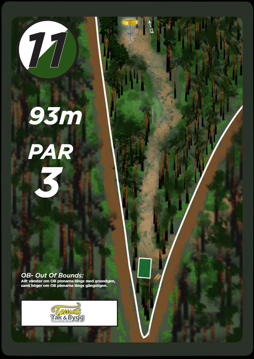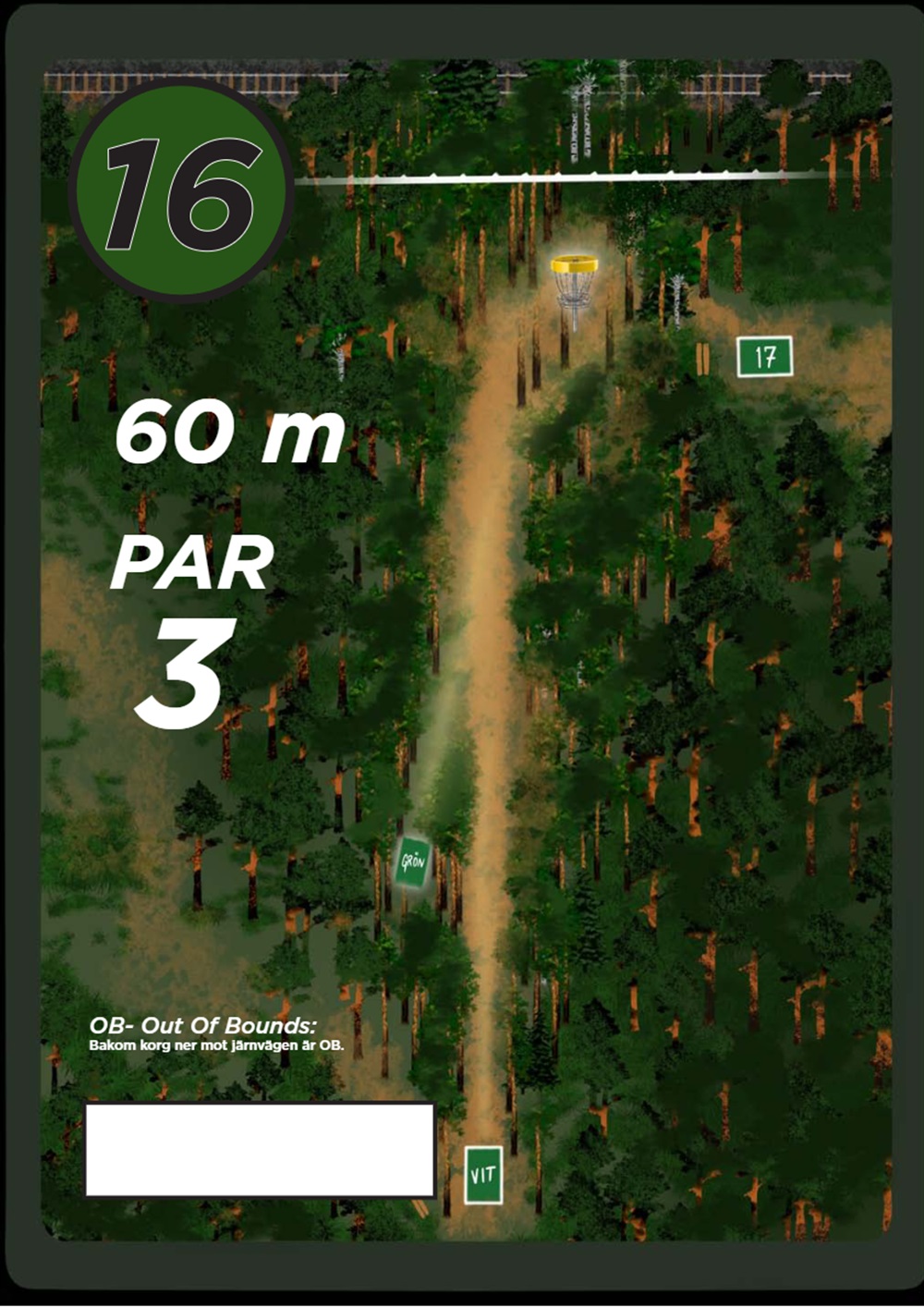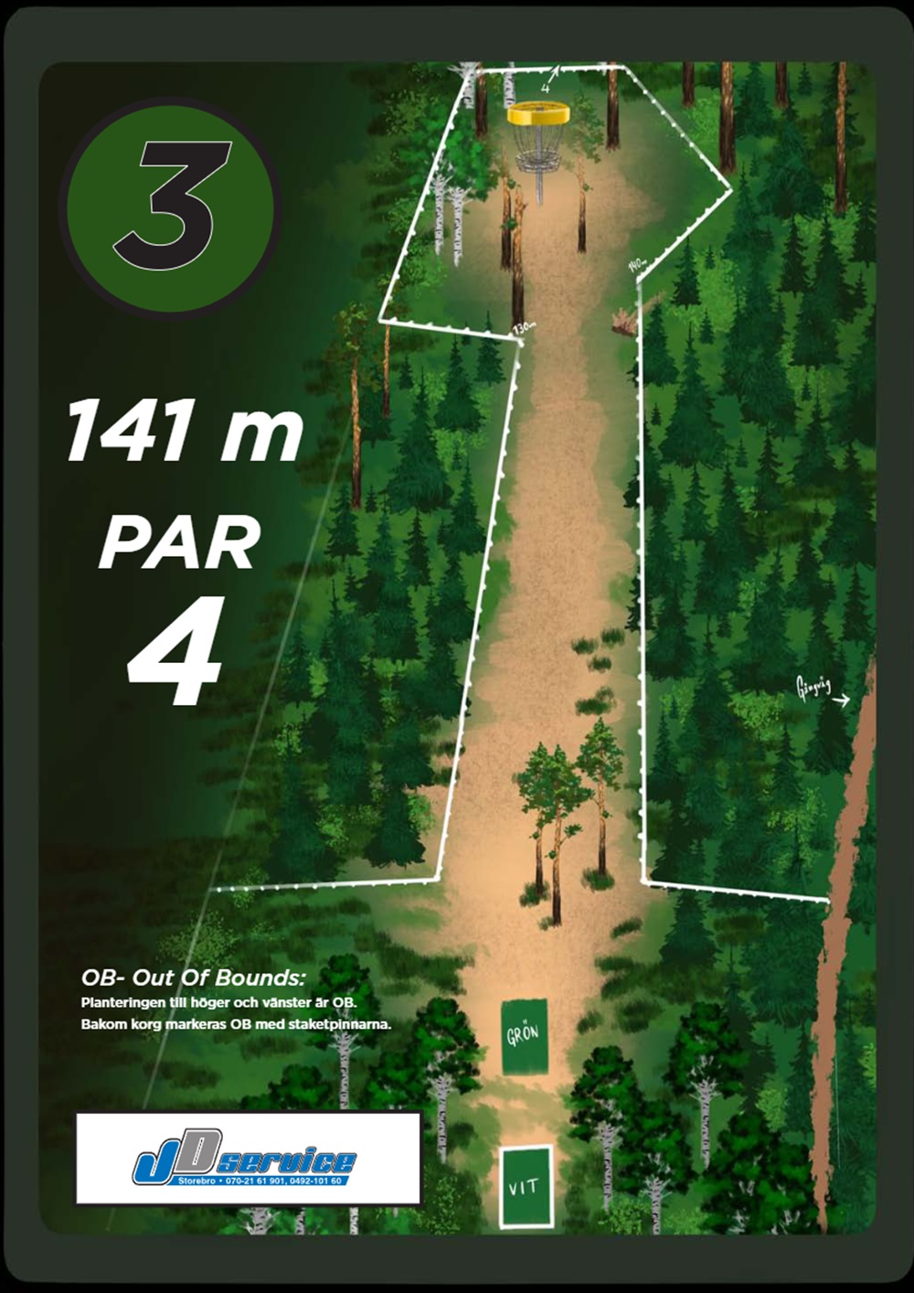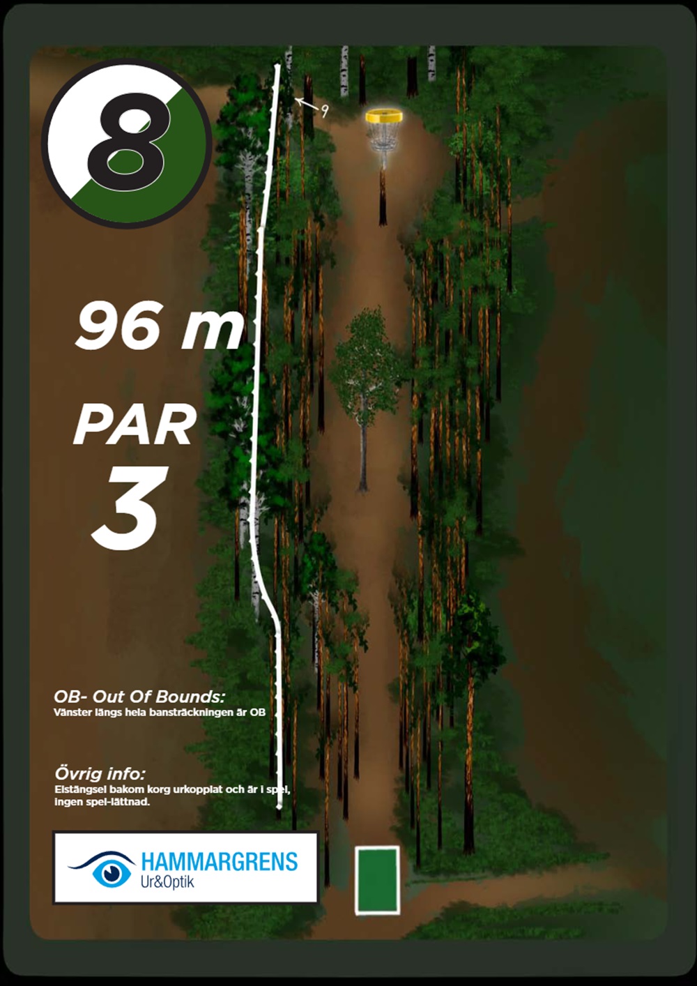 OB markeras på banan med antingen vita OB-pinnar eller staketpinnar (hål 2 och 3).
