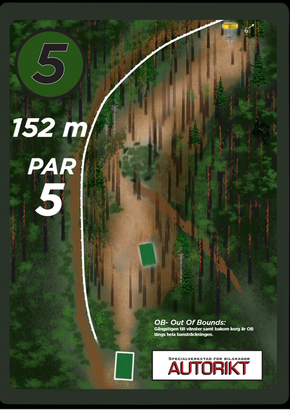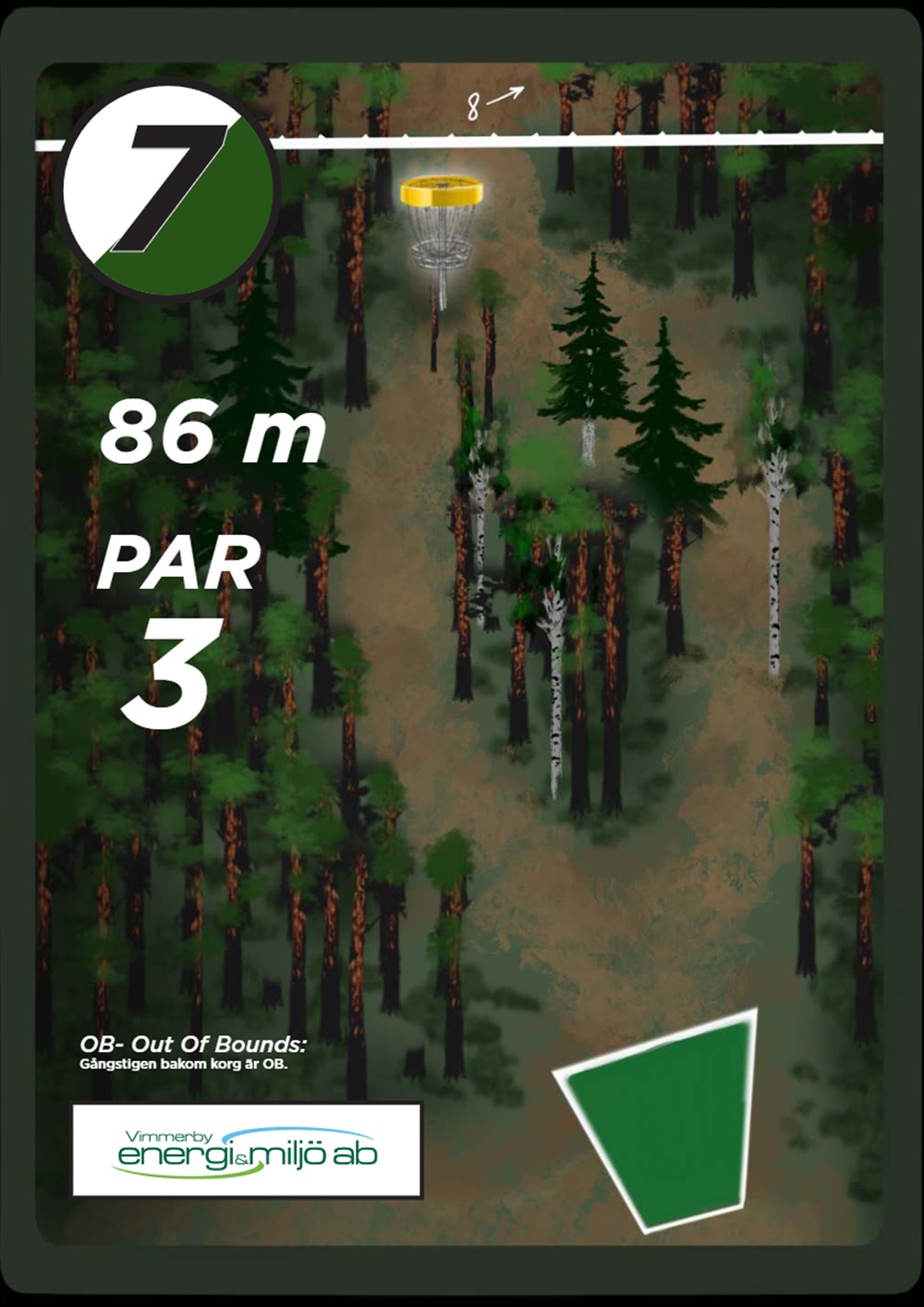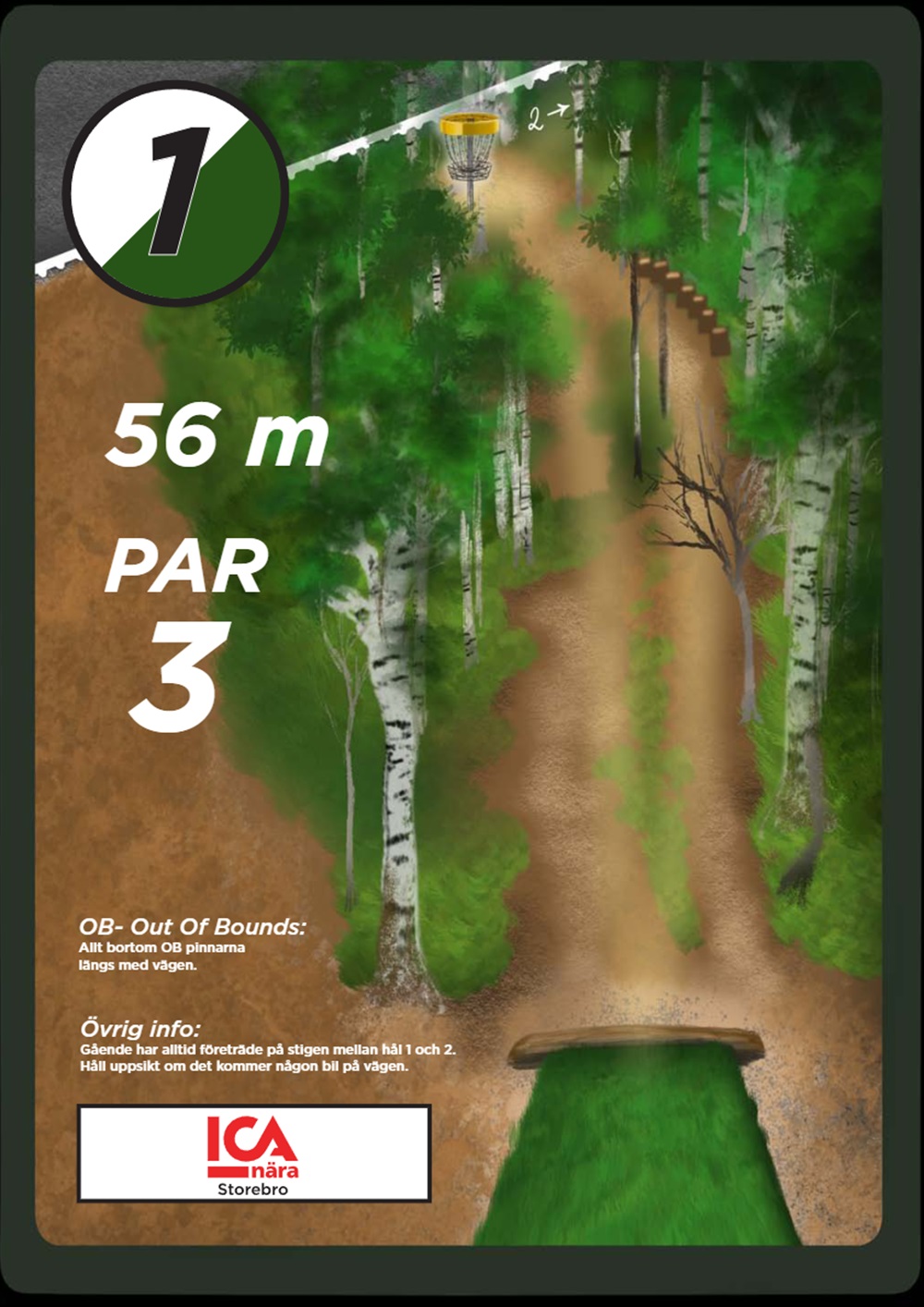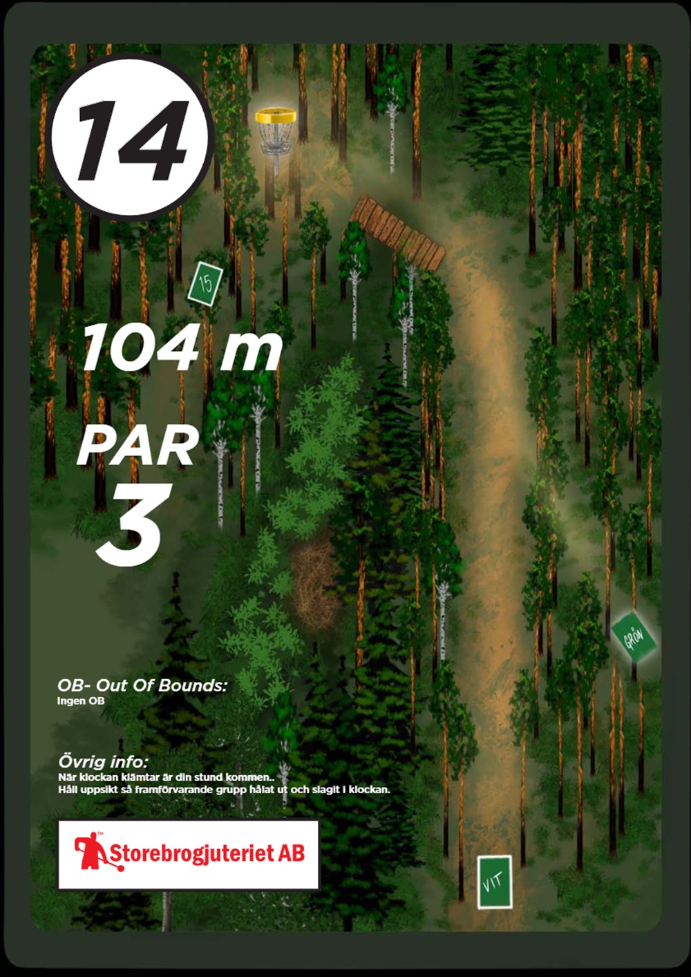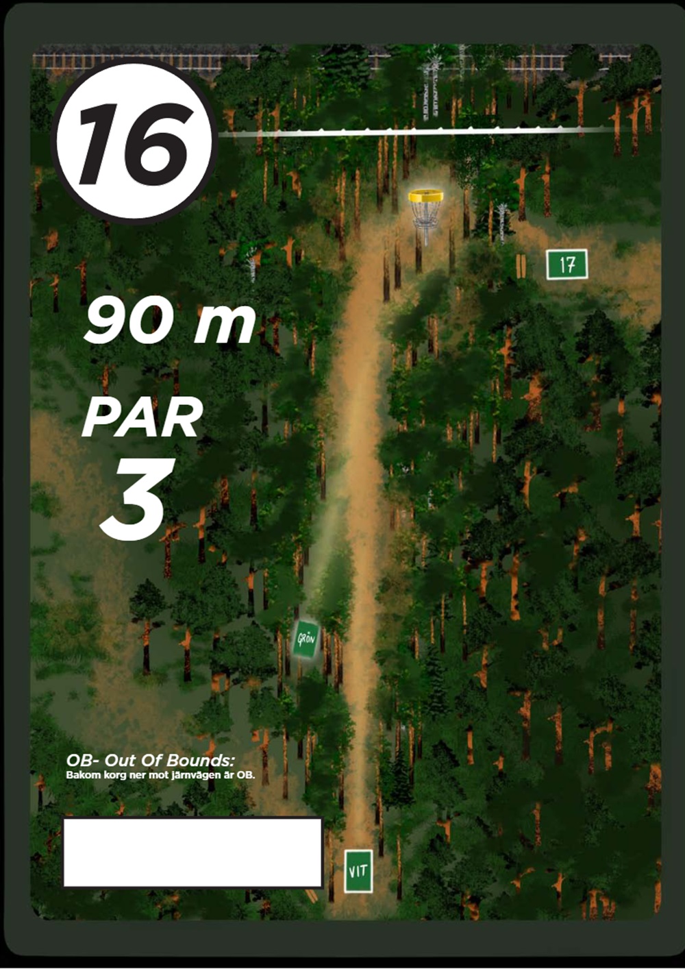 OB markeras på banan med antingen vita OB-pinnar eller staketpinnar (hål 2 och 3).