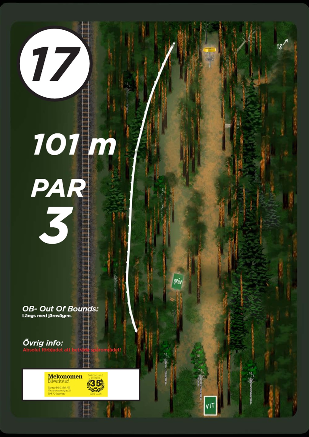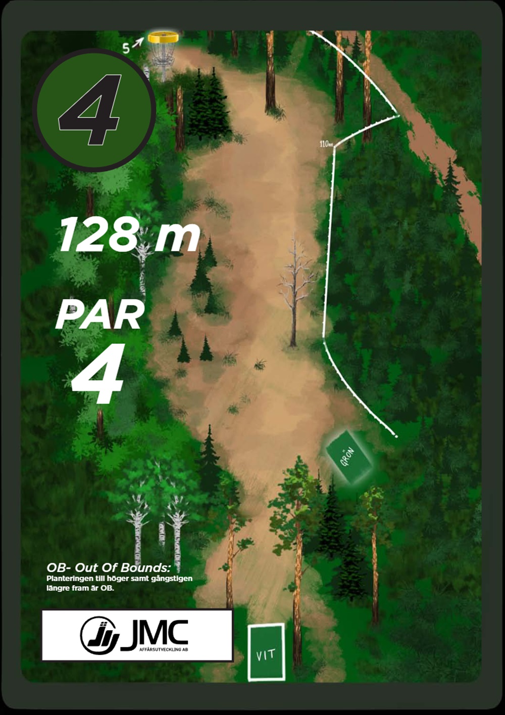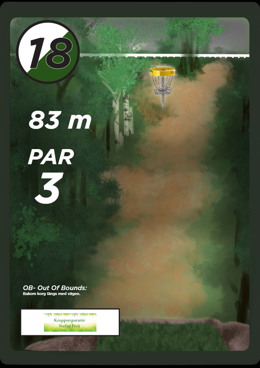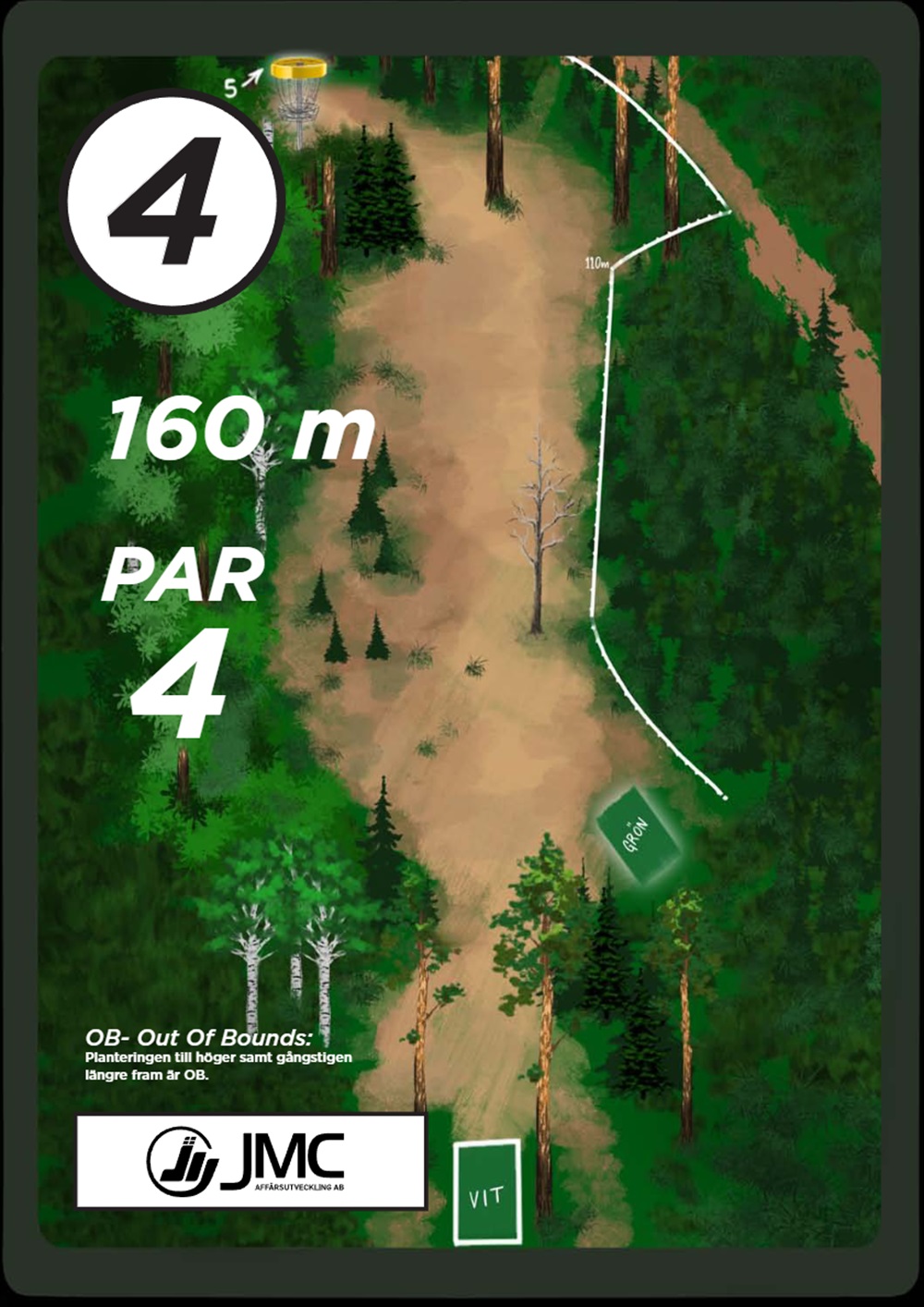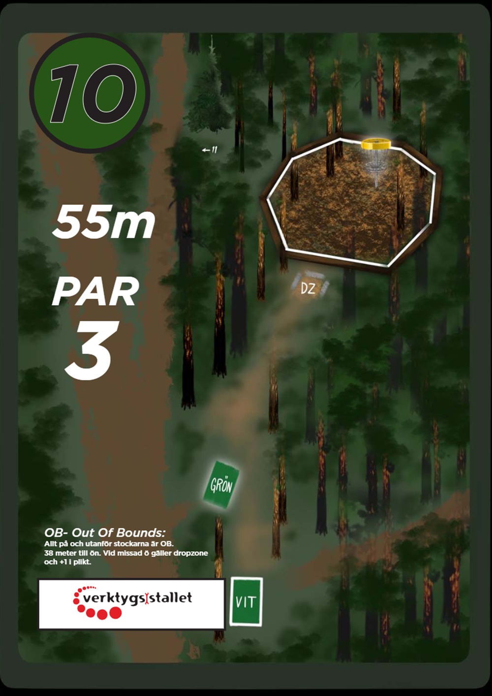 OB markeras på banan med antingen vita OB-pinnar eller staketpinnar (hål 2 och 3).