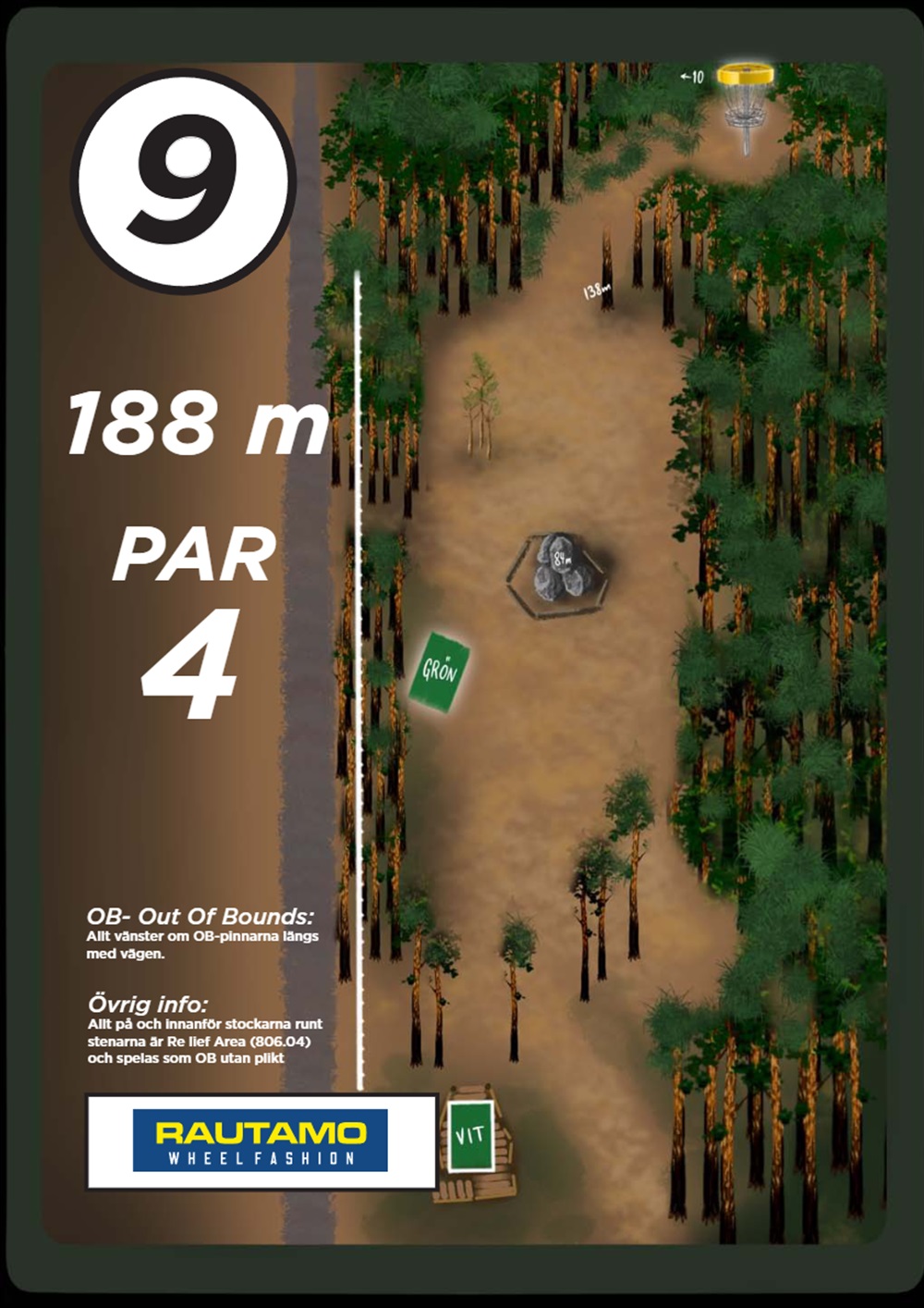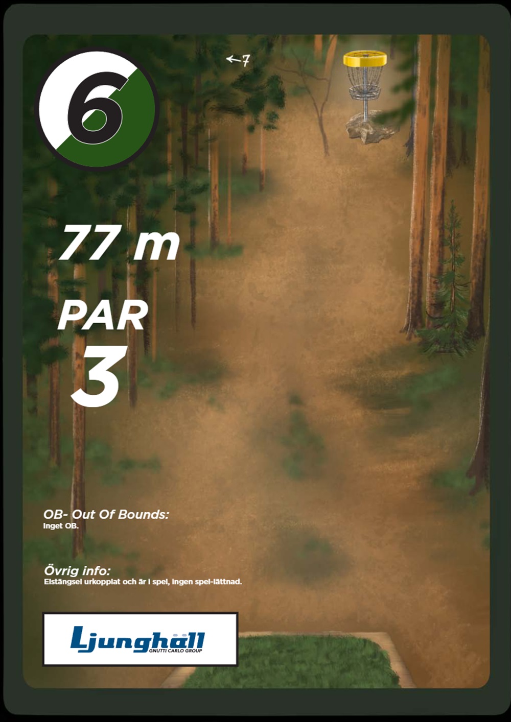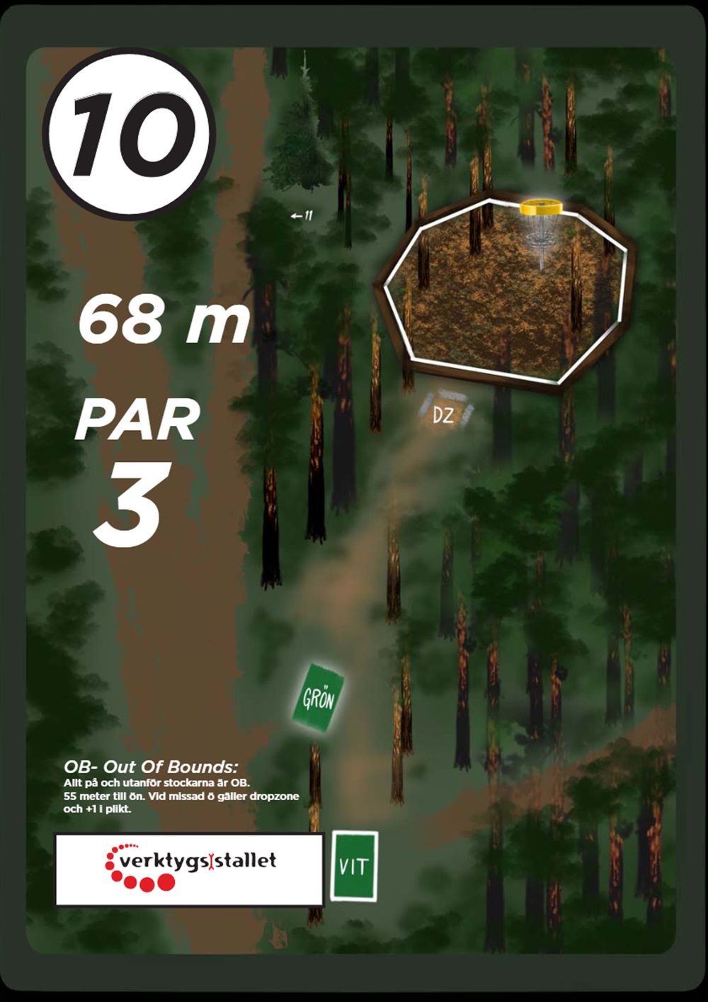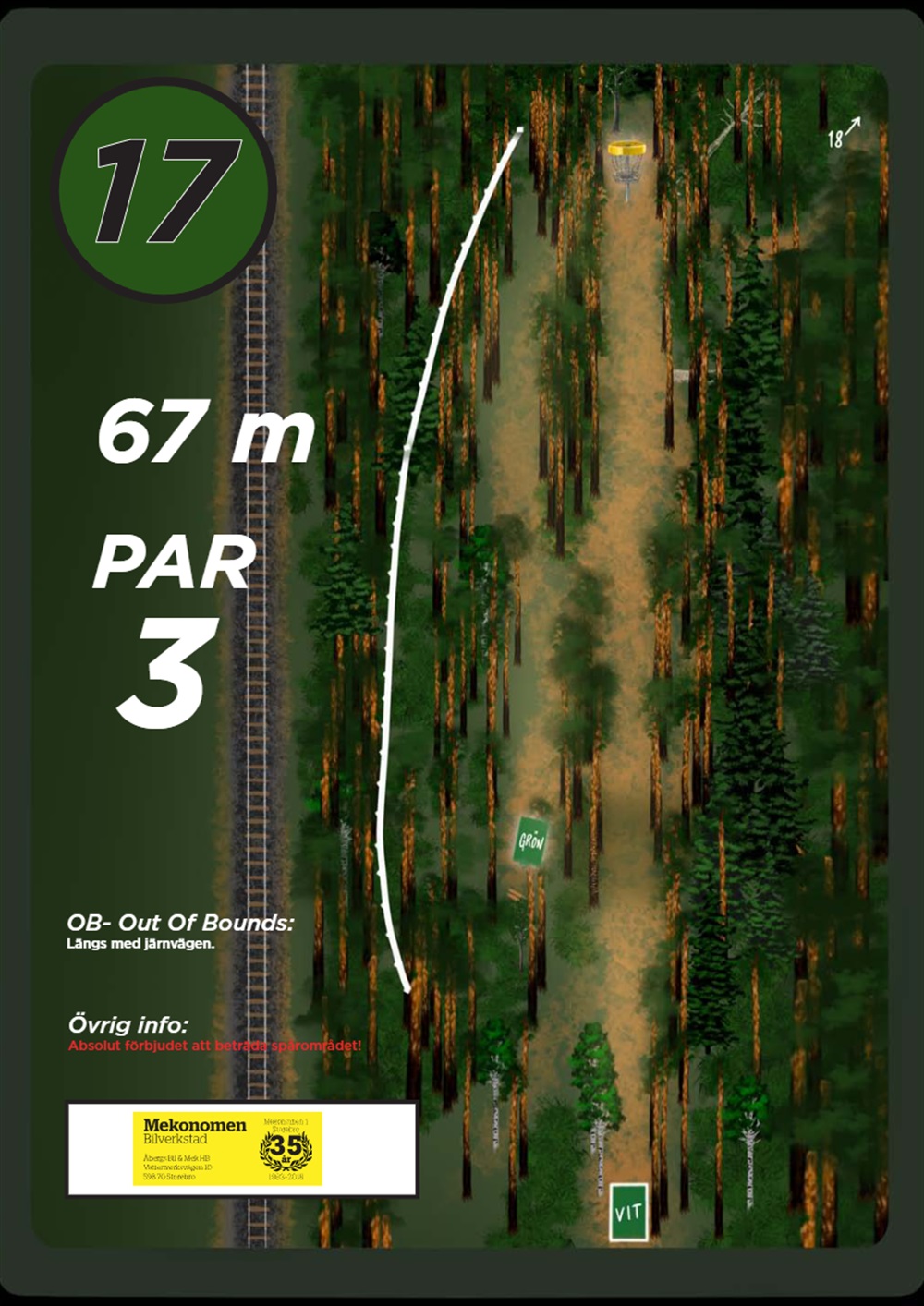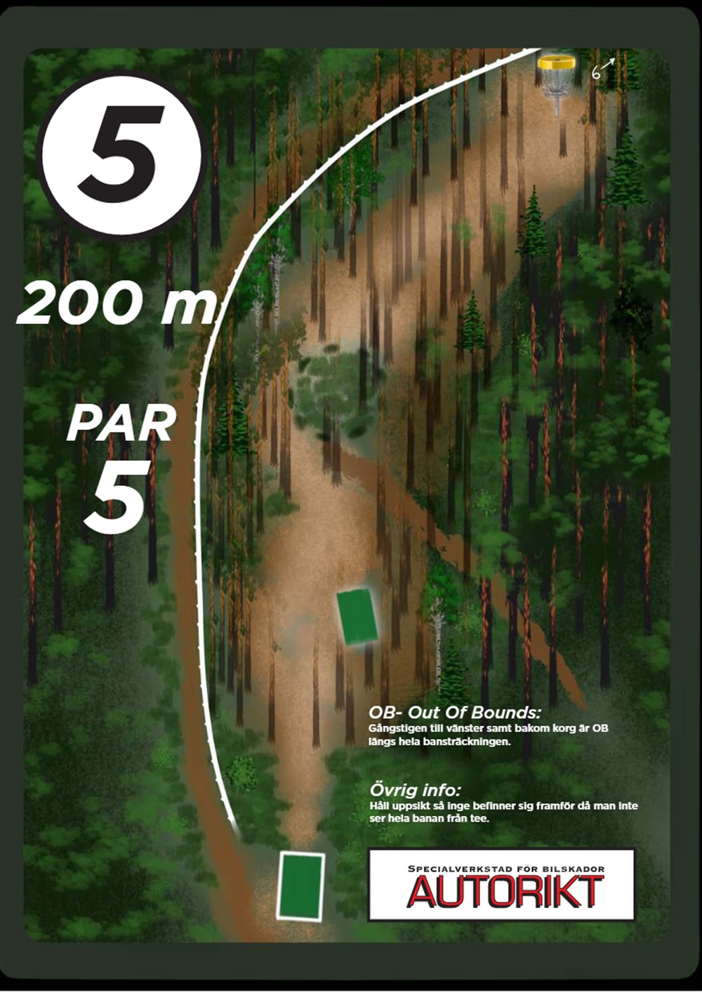 OB markeras på banan med antingen vita OB-pinnar eller staketpinnar (hål 2 och 3).