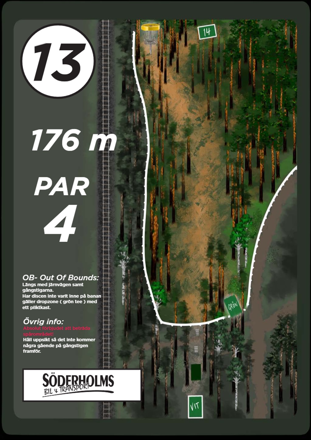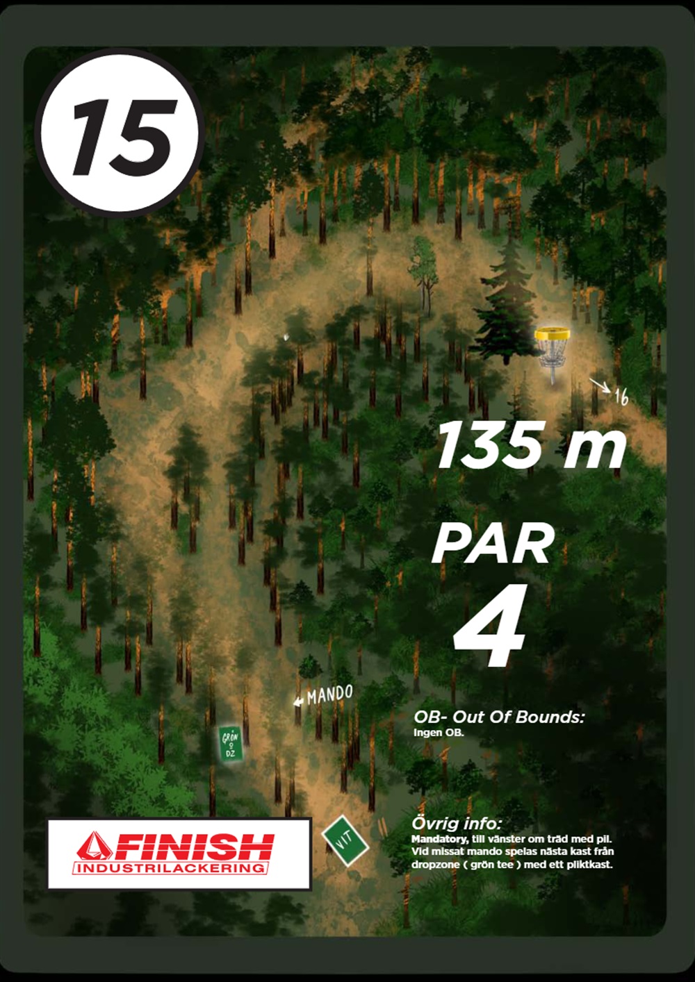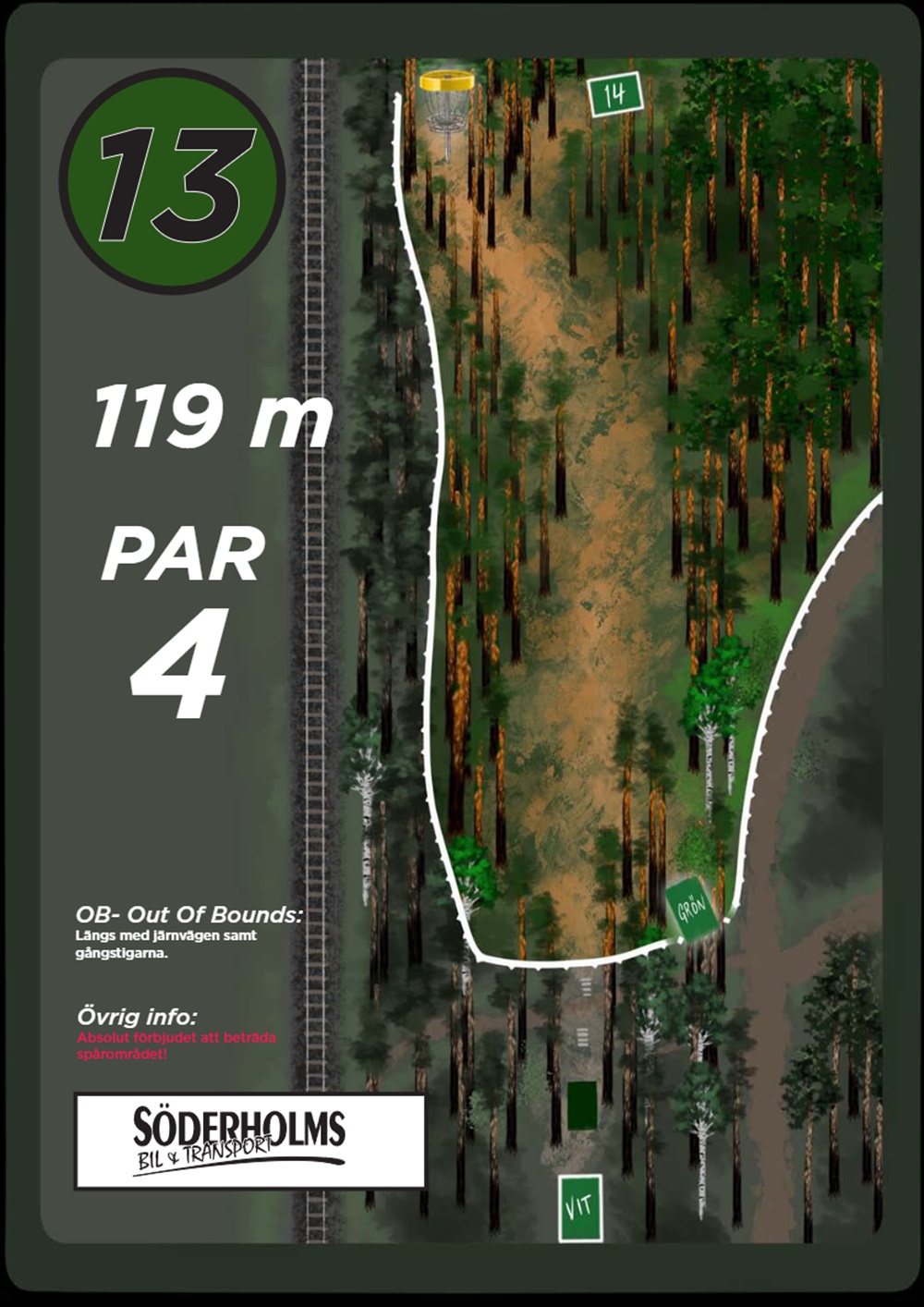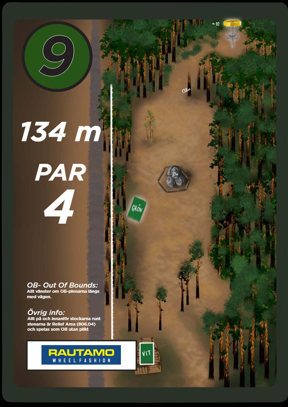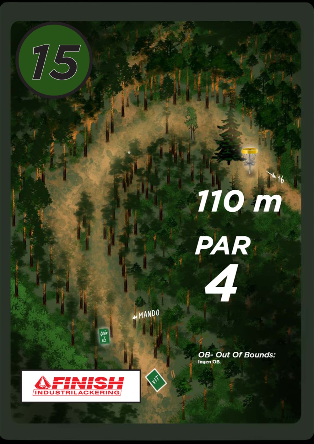 OB markeras på banan med antingen vita OB-pinnar eller staketpinnar (hål 2 och 3).