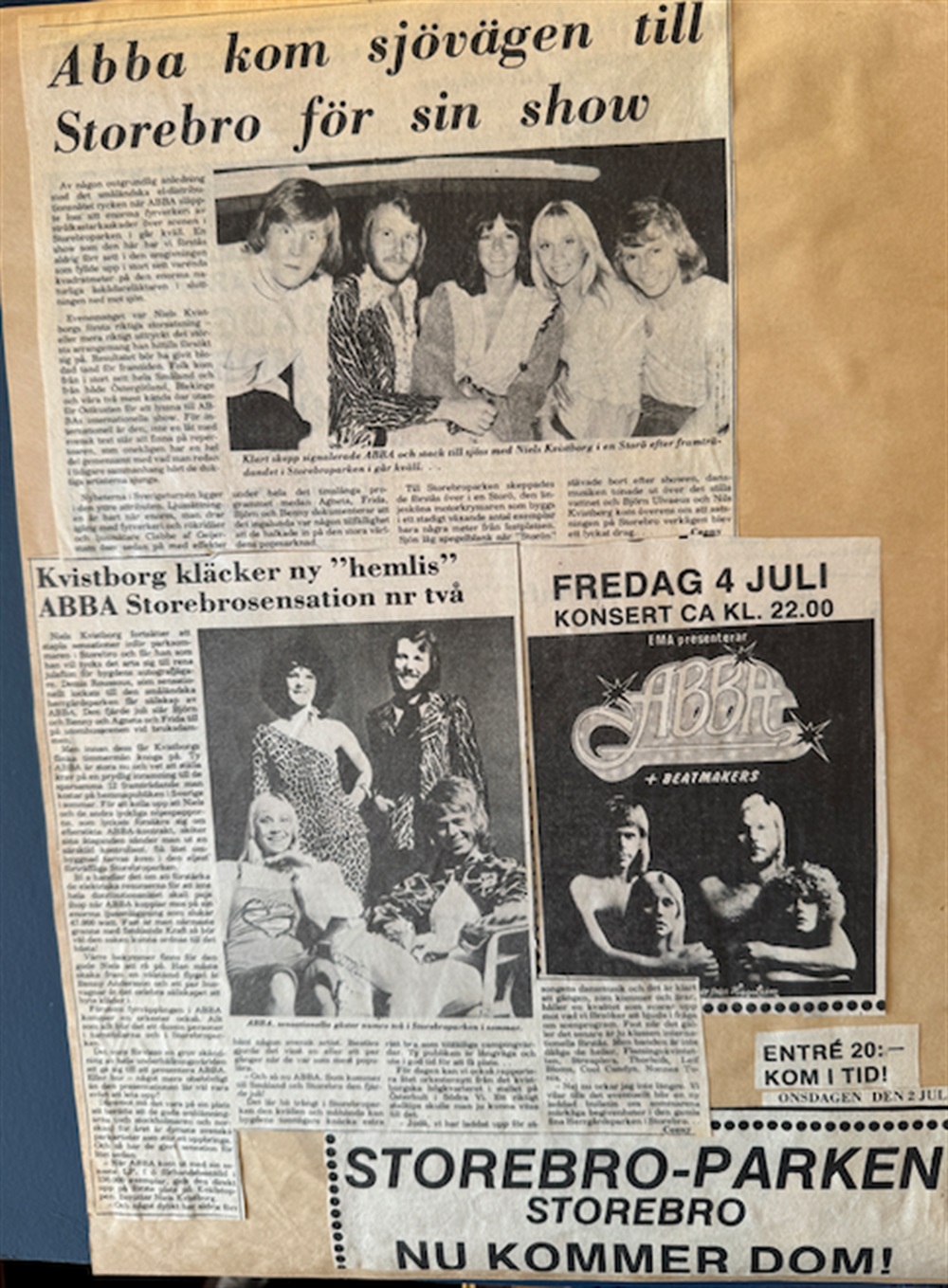 ABBA fick åka med en alldeles speciell Storebro-båt nedför Stångån till dammen och ända fram till scenen. De bytte om på båten, som blev deras alldeles speciella loge. Lennart Ivarsson fick äran att köra båten med den värdefulla lasten.