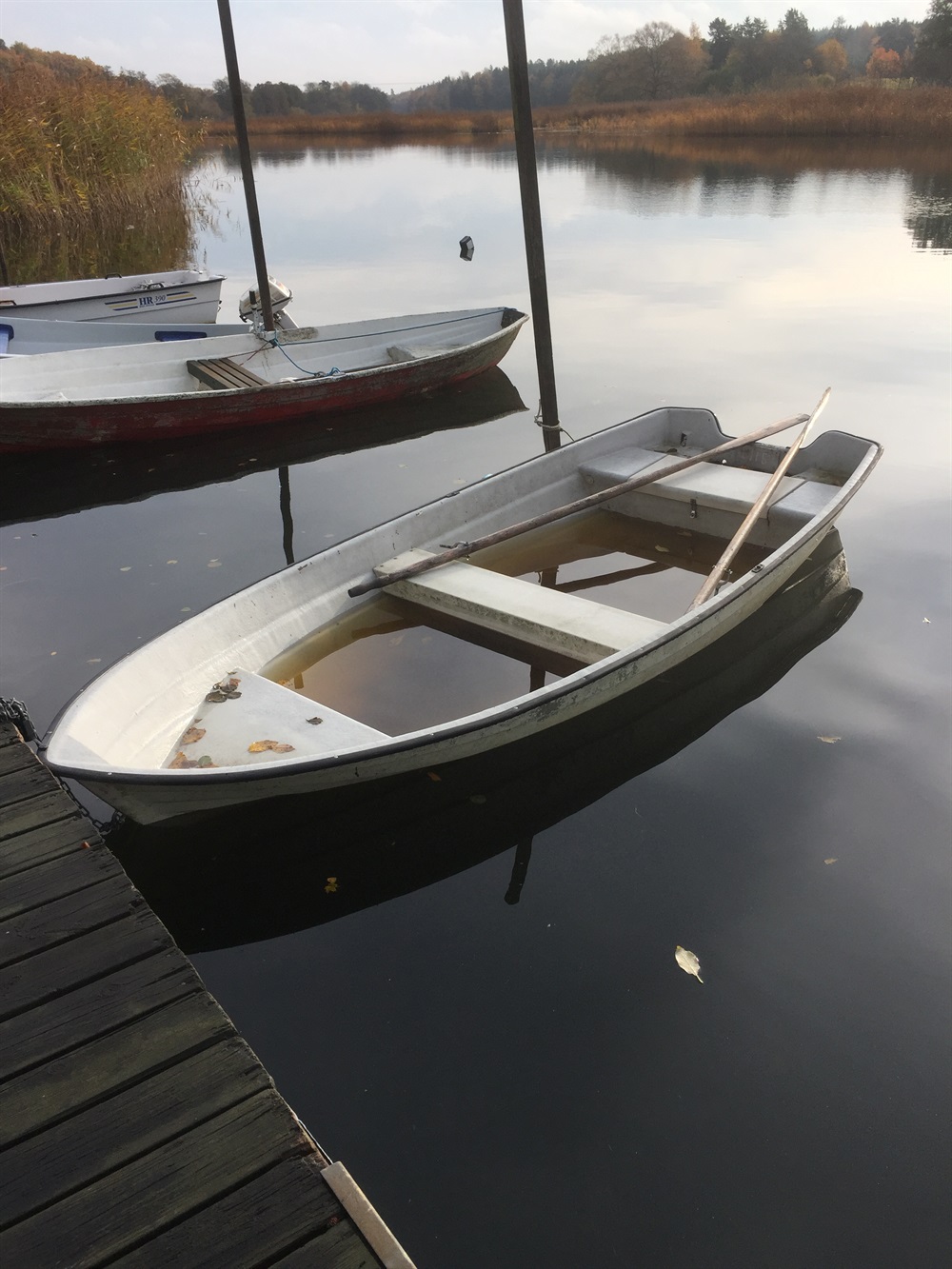 Det ligger tre båtar som absolut behöver tömmas på vatten. Ni som fortfarande använder båten in på hösten, måste tömma ur vattnet ur båten. Nr 6 börjar sjunka i fören och det belastar även bryggan.