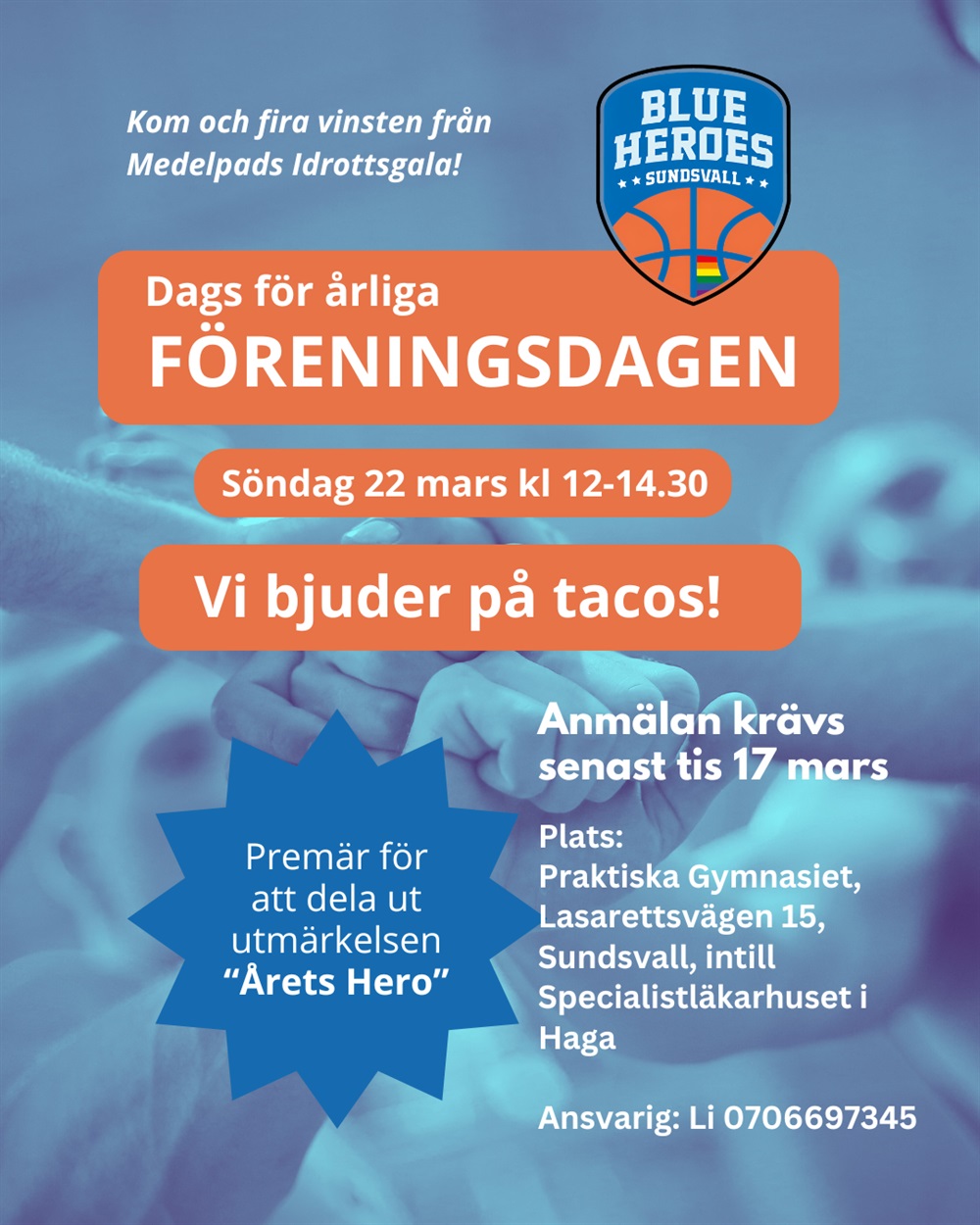 Anmälan senast 17 mars till ordförande Li L'Estrade 070-669 73 45 sundsvallblueheroes@gmail.com