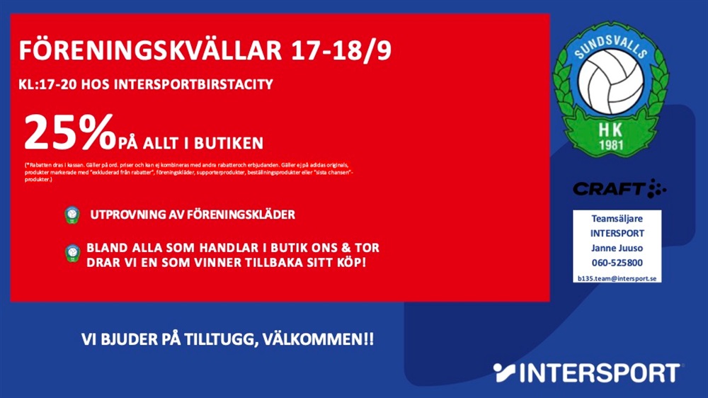 För att sjösätta och fira det nya samarbetet så bjuder Intersport in till klubbkvällar den 17 och 18 september mellan klockan 17-20 i Birsta.