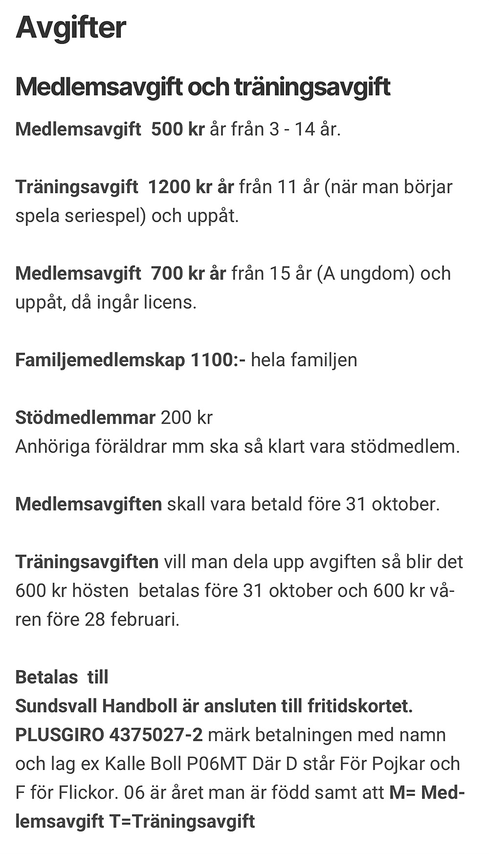 Betalning sker till Plusgiro 4375027-2 och märk betalningen med namn och lag, ex Kalle Boll P9. Betalningen ska vara gjord senast 1 december 2025.