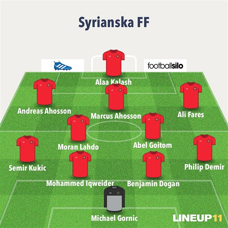 Syrianska ställde upp med 4-2-3-1 med Gornic i mål och en backlinje från höger bestående av Philip Demir, Benjamin Dogan, Mohammed Iqweider och Semir Kukic. Moran Lahdo och Abel Goitom skötte grovjobbet på den defensiva delen av mittfältet medan Andreas Ahosson, Marcus Ahosson och Ali Fares stod för offensiven bakom anfallaren Alaa Kalash