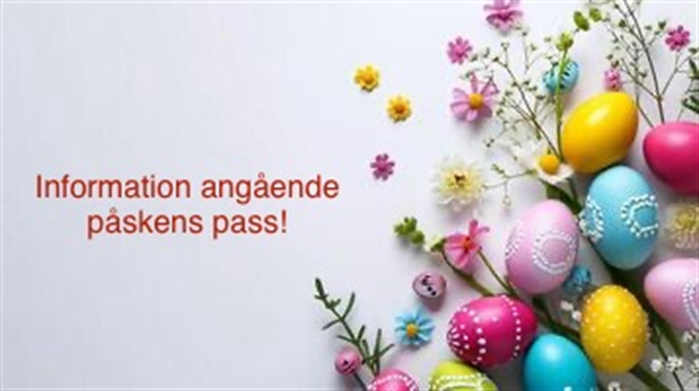 Under påsken har våra vuxenledare semester så alla pass under påskdagen (söndag) och annandag påsk (måndag) är inställda.