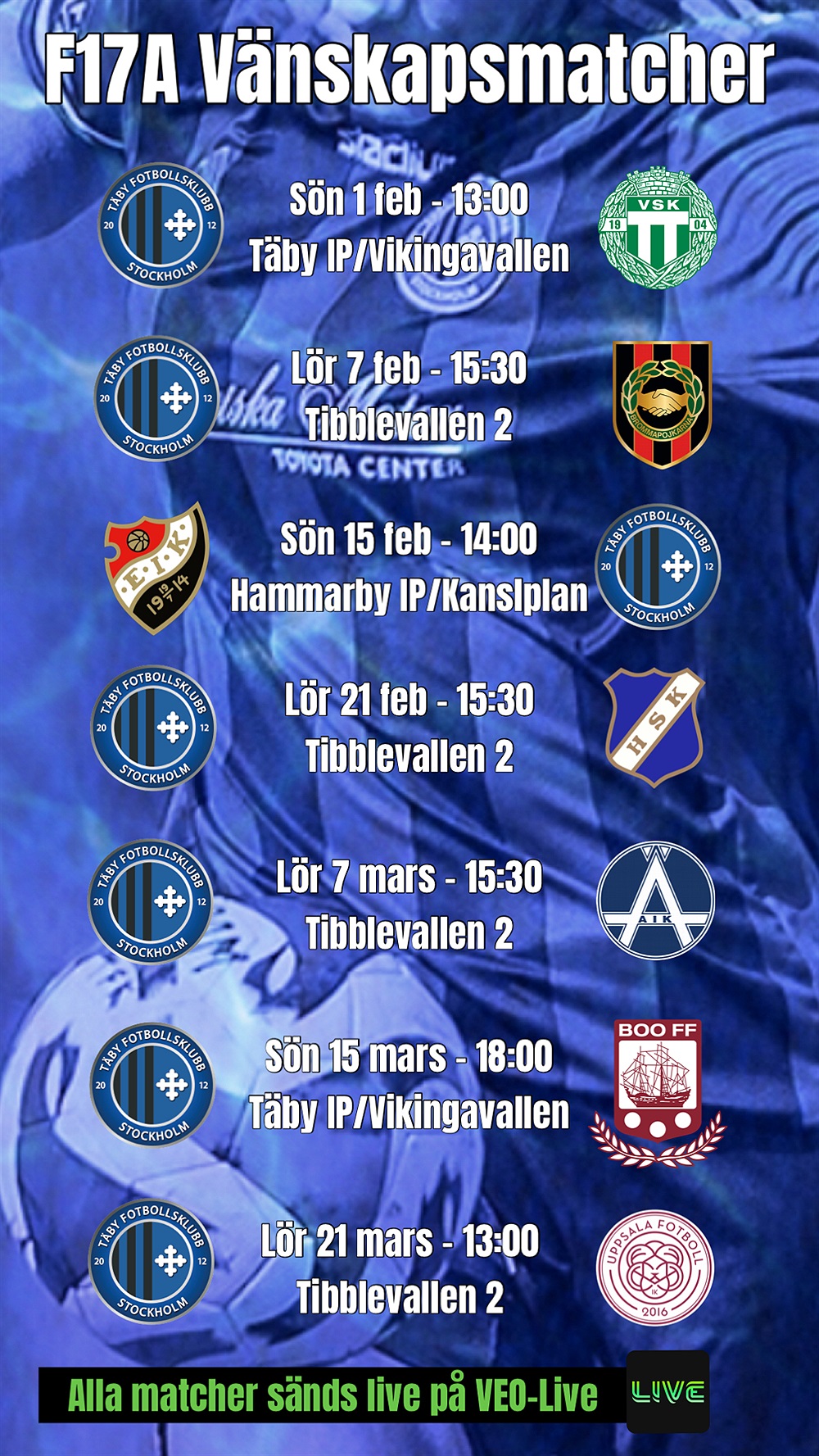 Här ser ni våra inplanerade vänskapsmatcher i feb och mars.