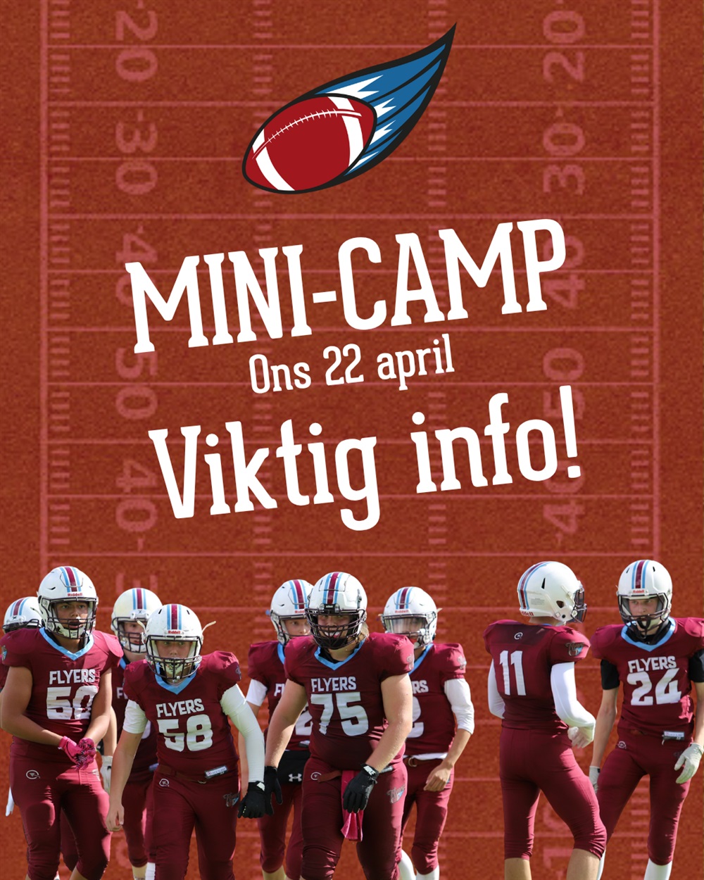 Vi kommer göra en ändring av upplägget. Spelare kommer att få träna både Offense och Defense, och behöver därmed anmäla in en andra position i formuläret. Vid utebliven anmälning av andra position så tilldelas man automatiskt en andra positionsgrupp. Positions grupper: QB/DB WR/DB RB/LB OL/DL Anmälningsformuläret hittar du här på hemsidan. Go Flyers!