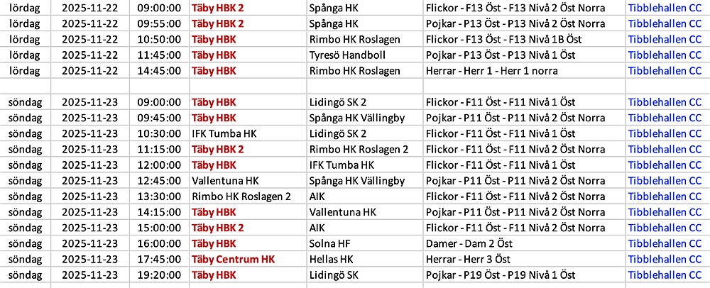Några av klubbens yngre lag plus klubbens 3 seniorlag spelar i Tibblehallen Lördag & Söndag, varmt välkomna ner till hallen och heja!