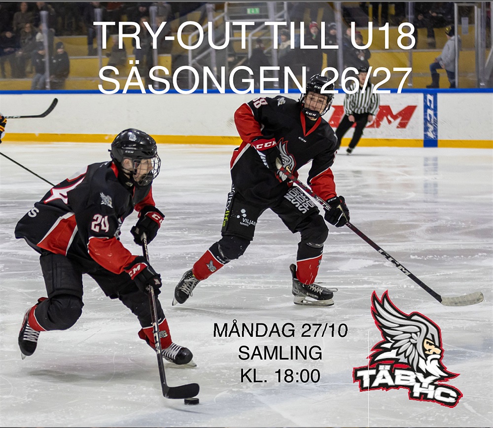 Täby HC bjuder in till Try-Out för att ta plats i vårat U18 Regionslag och hockeygymnasium till säsongen 2026/2027.