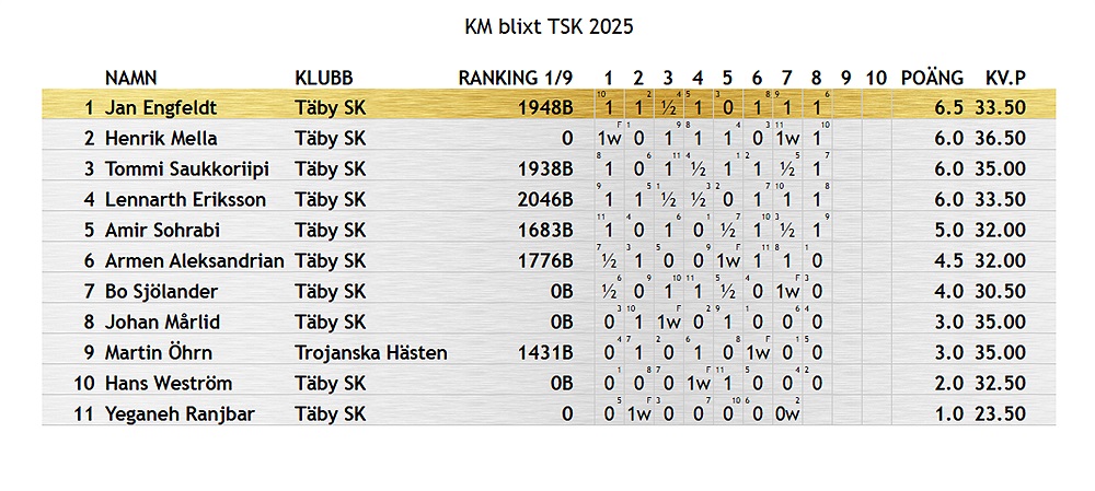 Resultat KM I snabbschack 2025
