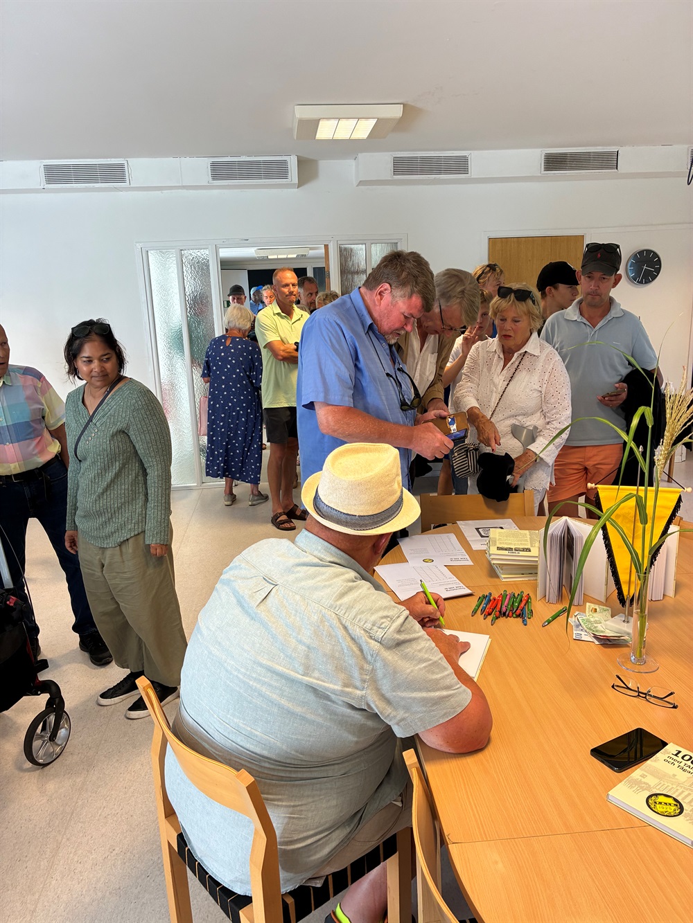 Författaren, den tidigare Tågarpsbon Bo Ståhl signerade böcker på löpande band och medgav viss skrivkramp senare på kvällen.
