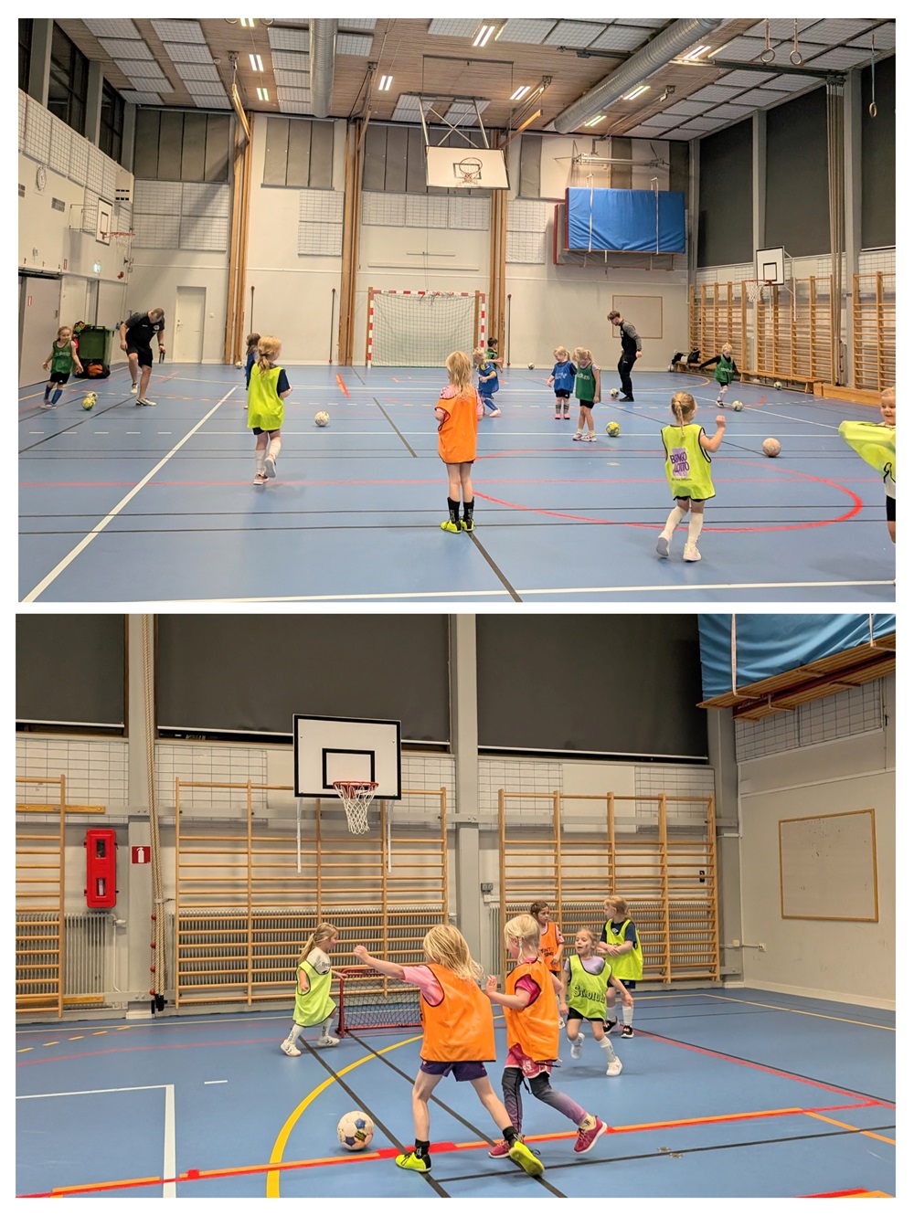 I dag hade vi en riktigt bra träning där alla barn var fokuserade och samarbetade bra under de övningar vi genomförde. Vi började med uppvärmning i form av dansstopp med boll, följt av leken ”Ingen boll på min sida”. Därefter fick barnen dribbla mellan koner och avsluta med skott på mål, innan vi avslutade med matchspel. Träningen rundades av med en variant av banan-ta, där barnen behövde tunnla med bollen för att frigöra sin lagkamrat.