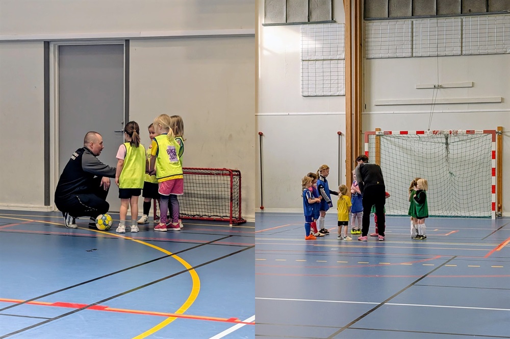 Efter det körde vi hinderbana med förra veckans upplägg, där tjejerna fick utmana både sin rörelse och bollkontroll.