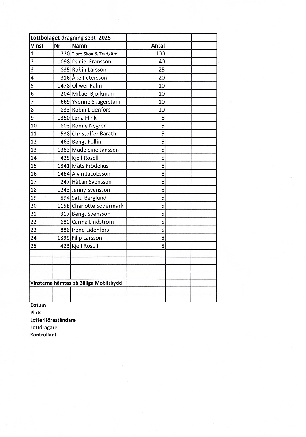 Denna dragningslista kom inte med när klubben flyttade över från laget.se till Svenskalag. Publiceras därför igen.