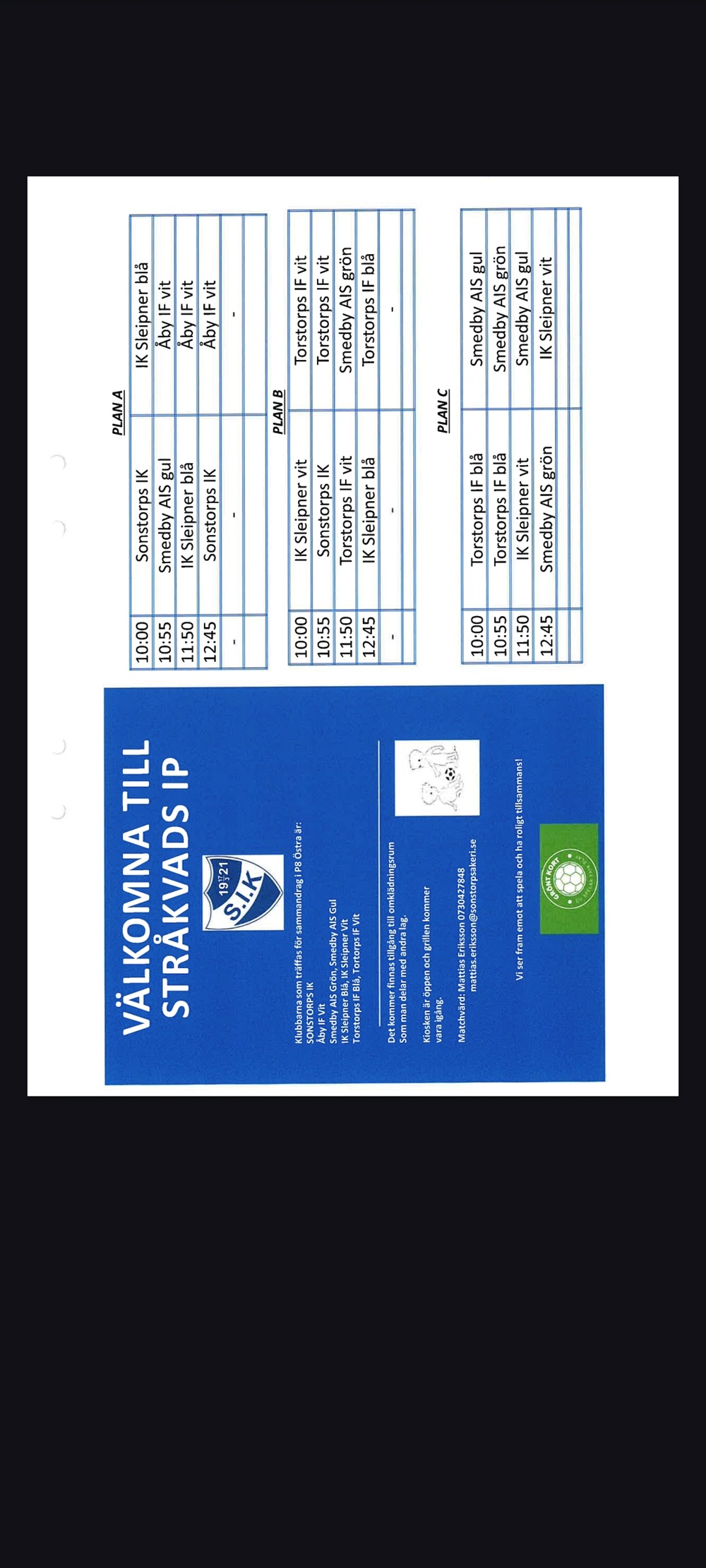 Här kommer spelschemat för sammandraget I Sonstorp den 24 augusti.