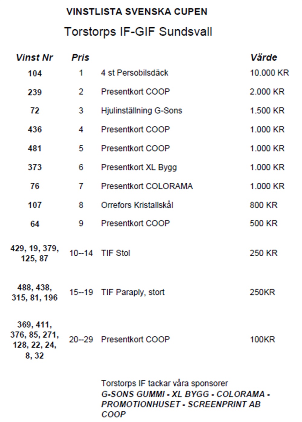 Priserna finns på matchdagen att hämta ut i kiosken.