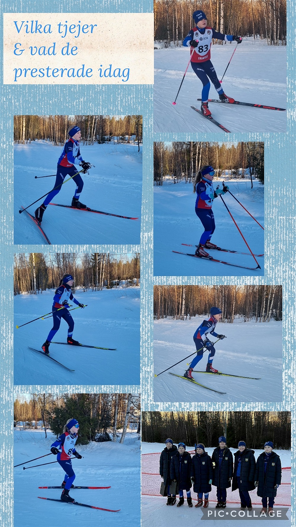 Moa, Astrid, Wilda, Majken, Saga och Willimina i full fart efter spåret. Hela gänget samlat efter genomförd tävling.