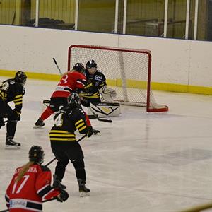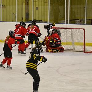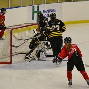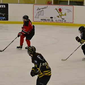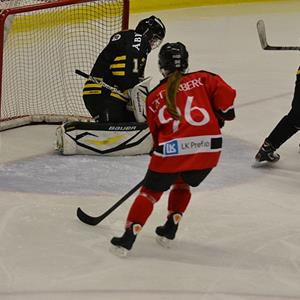 Vi pratar ihop oss under första periodpausen och får ihop spelet betydligt bättre i andra perioden som slutar 1-0 till SHK. Ellen håller ihop bakåt tillsammans med försvaret och vi skapar en hel del chanser framåt.