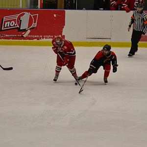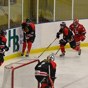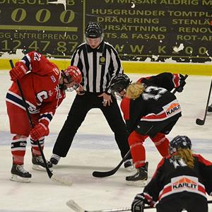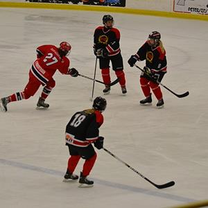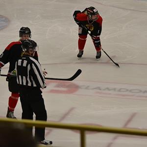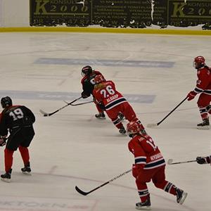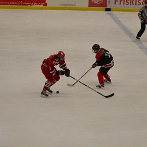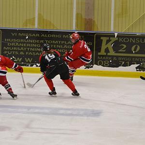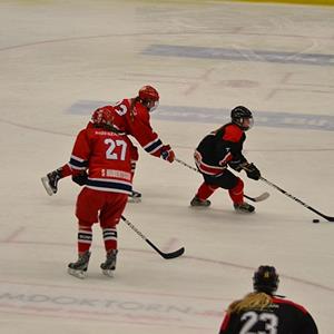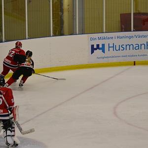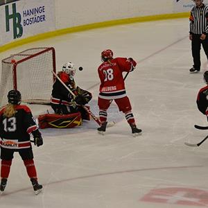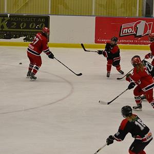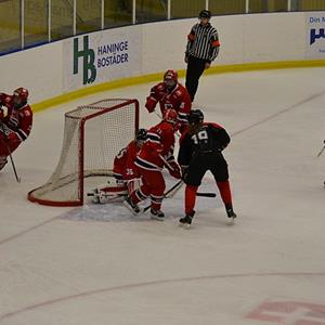 Vi spelar med tre kedjeformationer i stort sett hela matchen. Står upp bra i de första två perioderna och i den sista tryter orken hos motståndarna. Vi skapar tryck mot motståndarmålet. Det startar i samband med de tre utvisningarna som Södertälje tar efter varandra några minuter in i tredje och efter 12 min slår Emelie in en retur efter förarbete av Maja och Josefine.