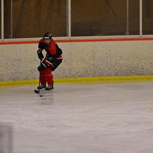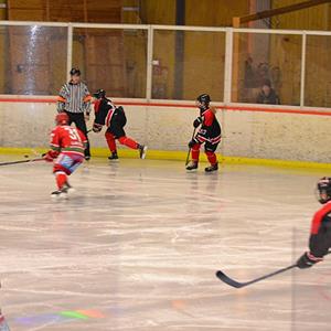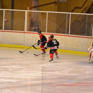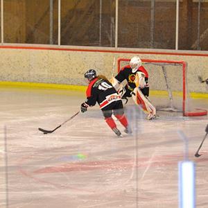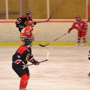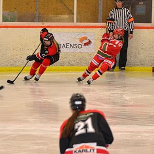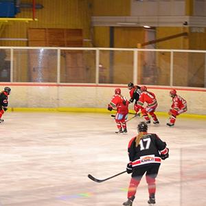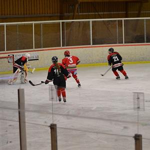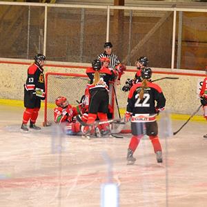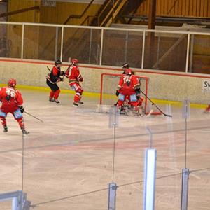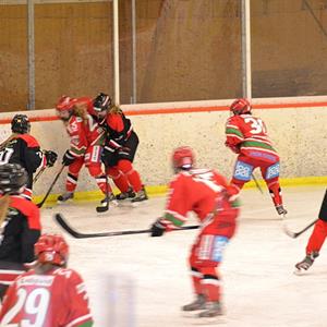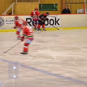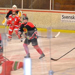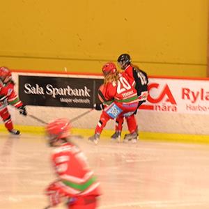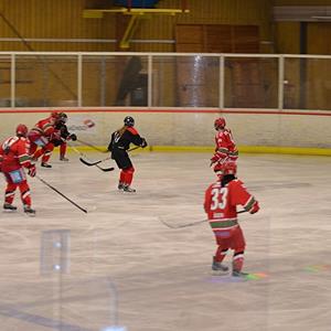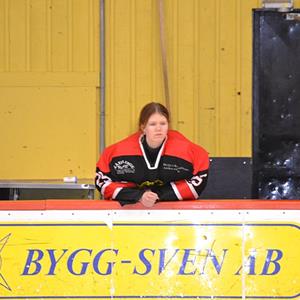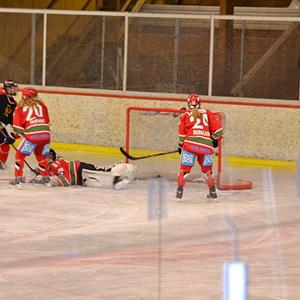 Vi startar matchen med ett par tre starka byten men hamnar sedan under hård press och vi ägnar oss till mycket stor del åt försvarsspel i egen zon. Ellen gör en riktigt bra insats i mål och vi är inte ofarliga när vi får tillfälle att anfalla. Efter drygt 10 minuters spel uppstår ett kontringsläge som Alice uppfattar och når Tilda i mittzon med en bra sargpassning. Inbrytning framför mål och vi noterar 0-1 i matchprotokollet (finns ett par matchbilder).