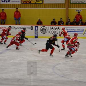 Matchbilden i andra liknar den första men nu ligger vi lite närmare i markeringarna och vi klarar också av att få till spelavbrott och andra möjligheter till byten. Vi krigar på som i första och även om Modo har ett rejält spelövertag så känner vi att vi är med i matchen. Vi hamnar i underläge 2-1 efter 6 minuters spel och det står sig perioden ut.