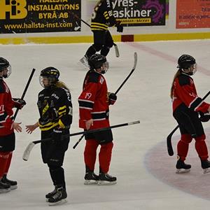 Extra roligt att Fanny gör två mål och att Jossan, Louise och Vicky gör många poäng men även Ellen, Moa, och Elin finns med i protokollet. Malin gör en bra insats i mål och försvarsmässigt fungerar även denna match bra.