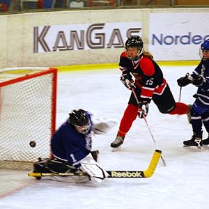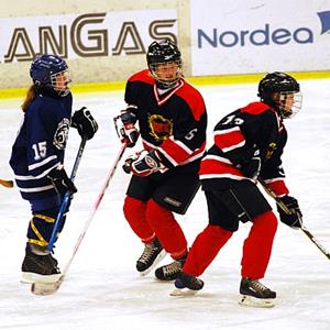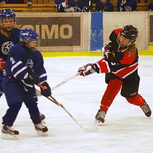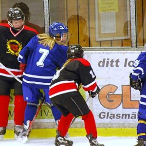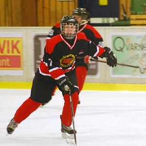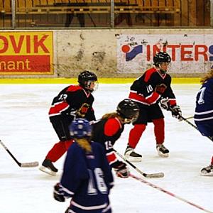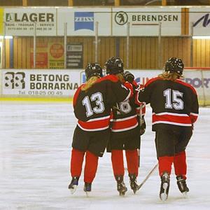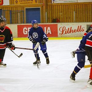 Matchen mot Gimo på bortais slutade med seger. 1-9 efter en avvaktande inledning där Gimo tog ledningen med 1-0 redan efter en dryg minut. Matchen var riktigt spännande att följa, speciellt de första två perioderna då resultatet fortfarande var riktigt jämt (1-1 efter första perioden och 1-3 efter andra). Emma`s mål fram till 1-2 kom till genom ett riktigt bra skott från blå som målvakten inte kunde hålla. Det lönar sig att nyttja backarna i anfallszon och det lyckades vi bra med stundtals i matchen.