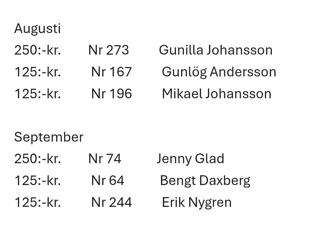Det har varit dragning i vårt supporterkortslotteri för månaderna augusti och september.