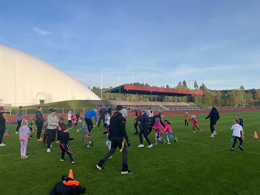 Träningen i denna grupp har fokus på rörelseglädje och barnen får pröva och träna friidrottens grenar på ett lekfullt sätt.
