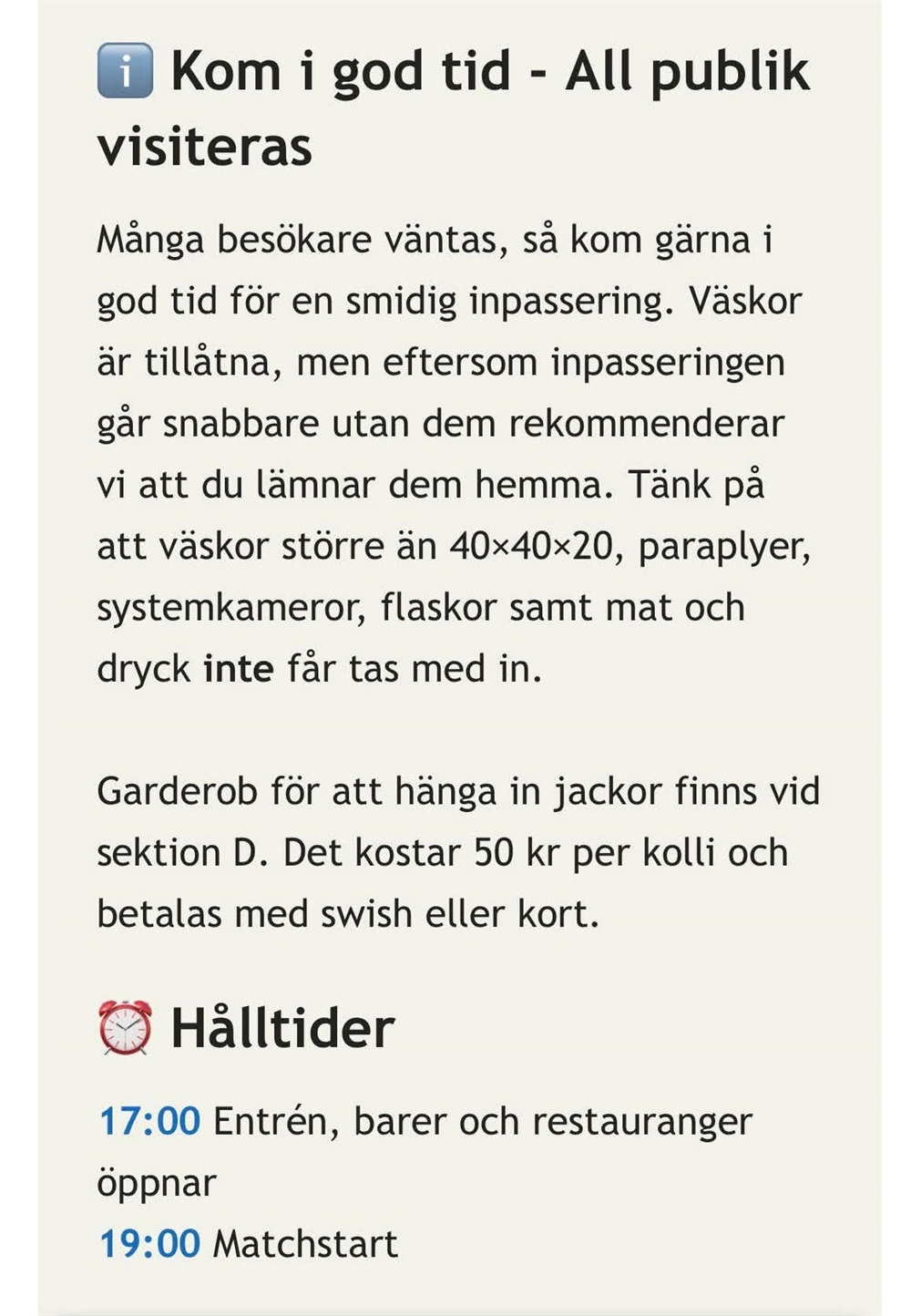 | 17:30 | Samling utanför Scandinavium, vid McDonalds |