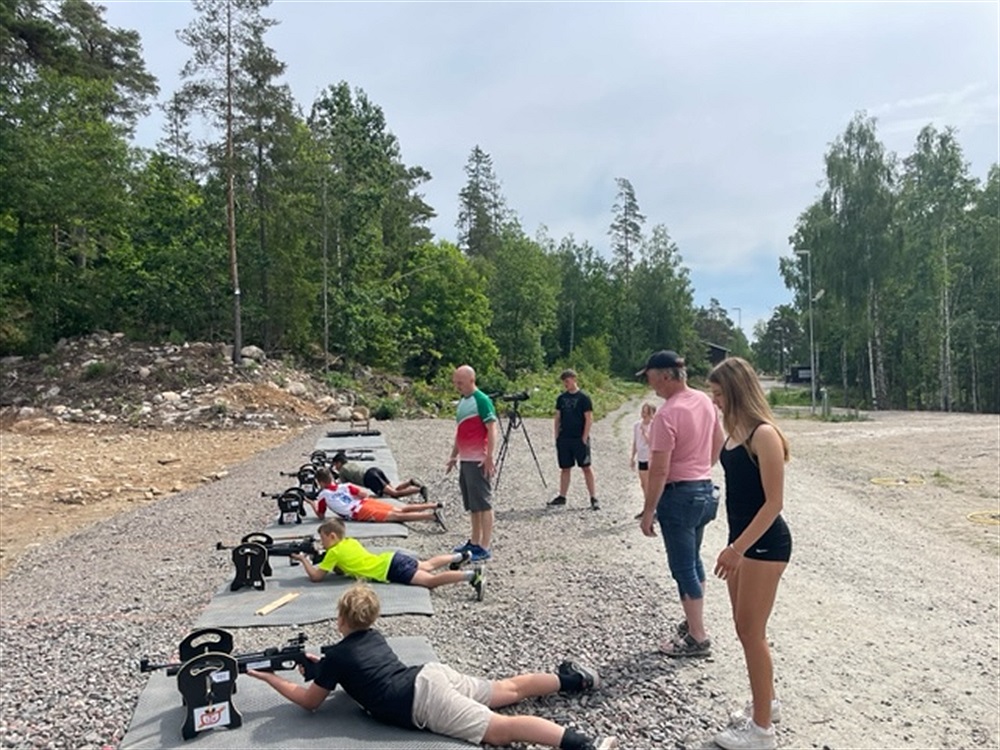 Man behöver vara 9-10 år, så man når på luftgevären. Lämpliga kläder är träningskläder med lite varma överdrag om det är kyligare väder. Vi blandar rörelse och skytte.