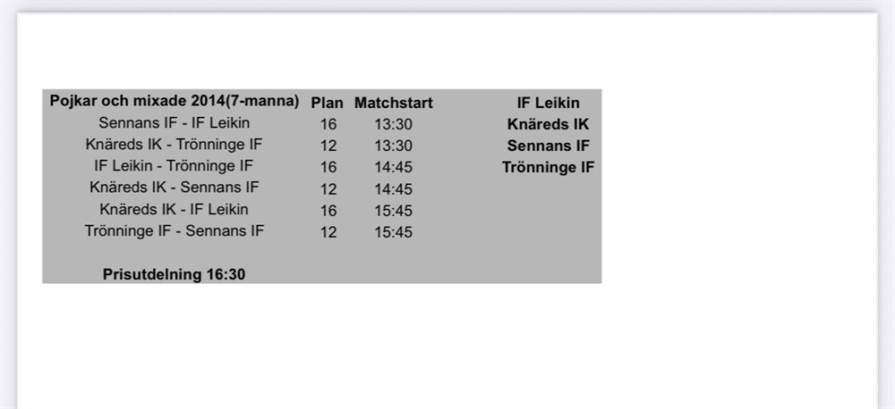 Vi har fått en plats med 1 st lag.